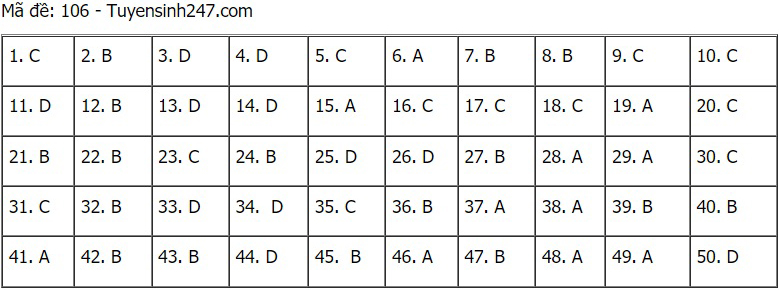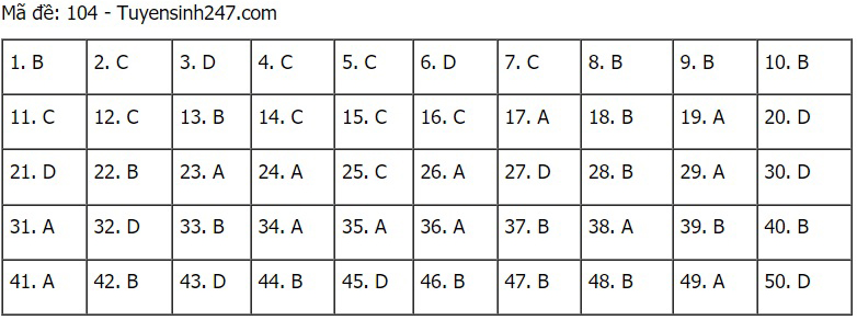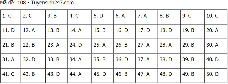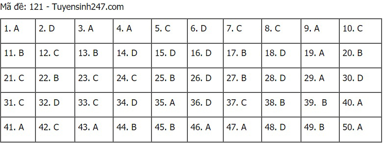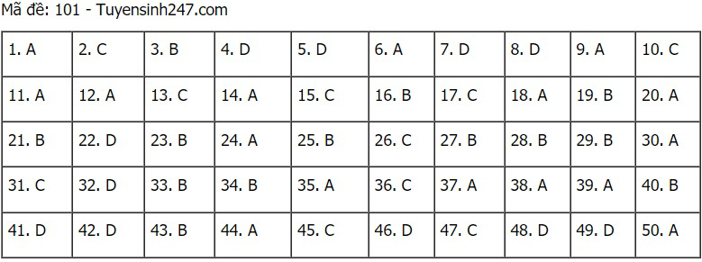 Đề thi và đáp án môn Toán tốt nghiệp THPT năm 2021 tất cả mã đề 101, 102, 103, 104, 105, 106, 107, 108, 109, 110, 111, 112, 113, 114, 115, 116, 117, 118, 119, 120, 121, 122, 123, 124.