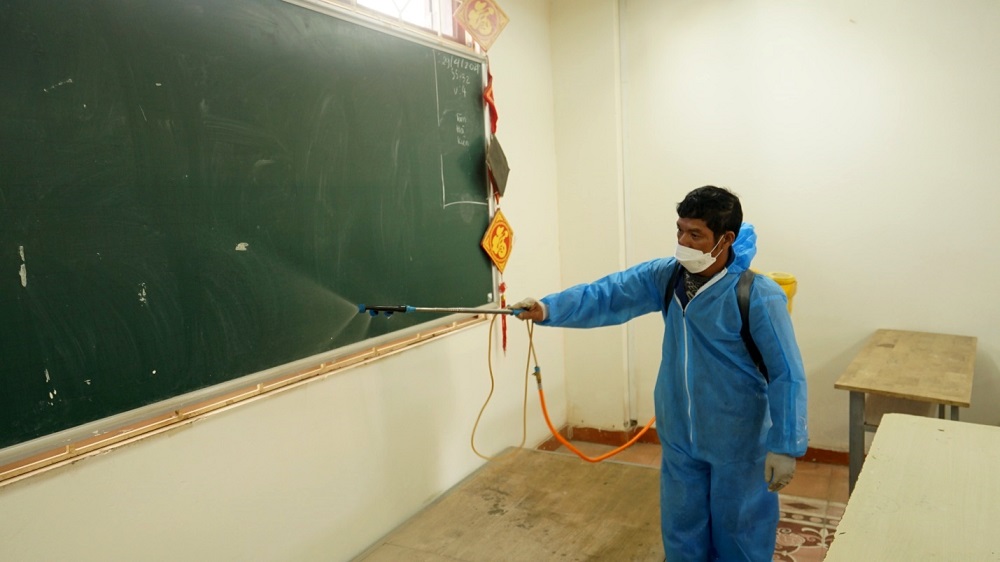Phương châm chung nếu phát hiện có học sinh có biểu hiện ho, sốt, khó thở,… là: “Khoanh vùng hẹp, truy vết nhanh, khử khuẩn kịp thời, để học sinh yên tâm học tập”.