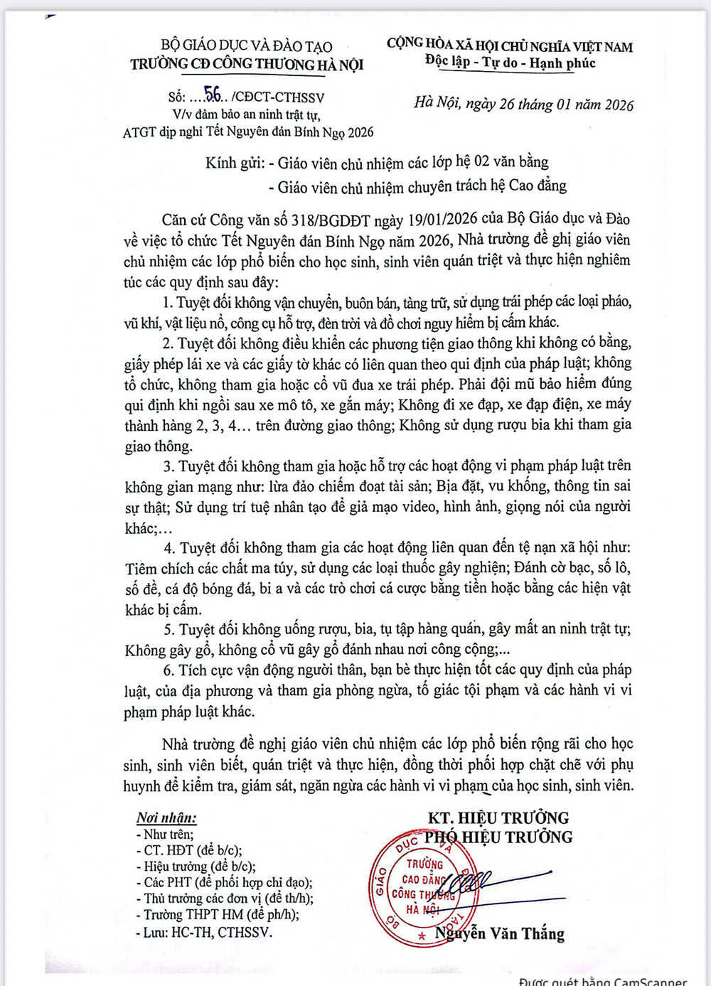 Công văn số 56 về việc đảm bảo an ninh trật tự, ATGT dịp nghỉ Tết Nguyên đán Bính Ngọ 2026