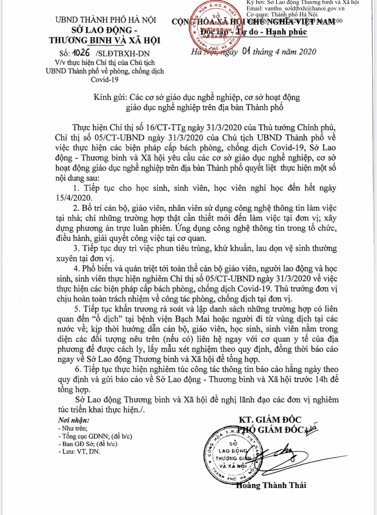 Cv số 1026 của SLĐTBXH v/v tiếp tục cho học sinh, sinh viên nghỉ học đến 15/0423:07 - 01/04/2020 Chia sẻ: