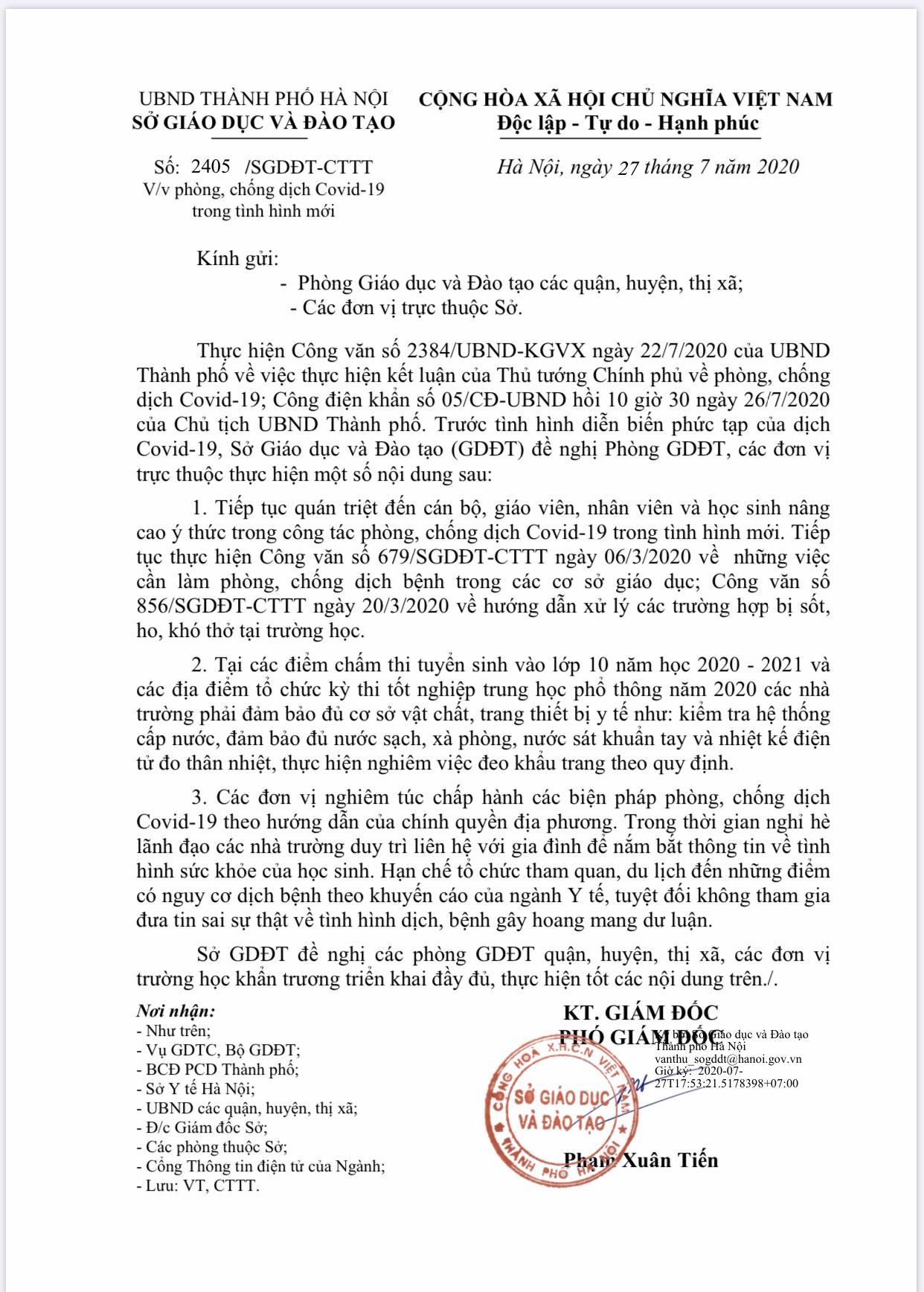 CV số 2405 của SGDĐT ngày 27/07/2020 v/v phòng, chống Covid-19 trong tình hình mới15:18 - 28/07/2020 Chia sẻ: