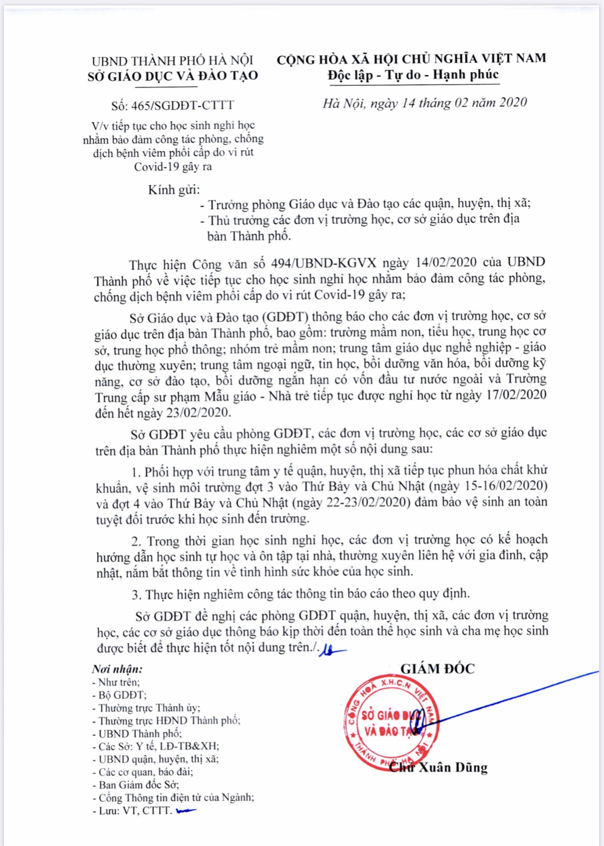Cv số 465 của SGDĐT v/v tiếp tục cho HS nghỉ học nhằm đảm bảo công tác phòng chống dịch bệnh viêm phổi cấp do virus Covid-19 gây ra19:56 - 16/02/2020 Chia sẻ: