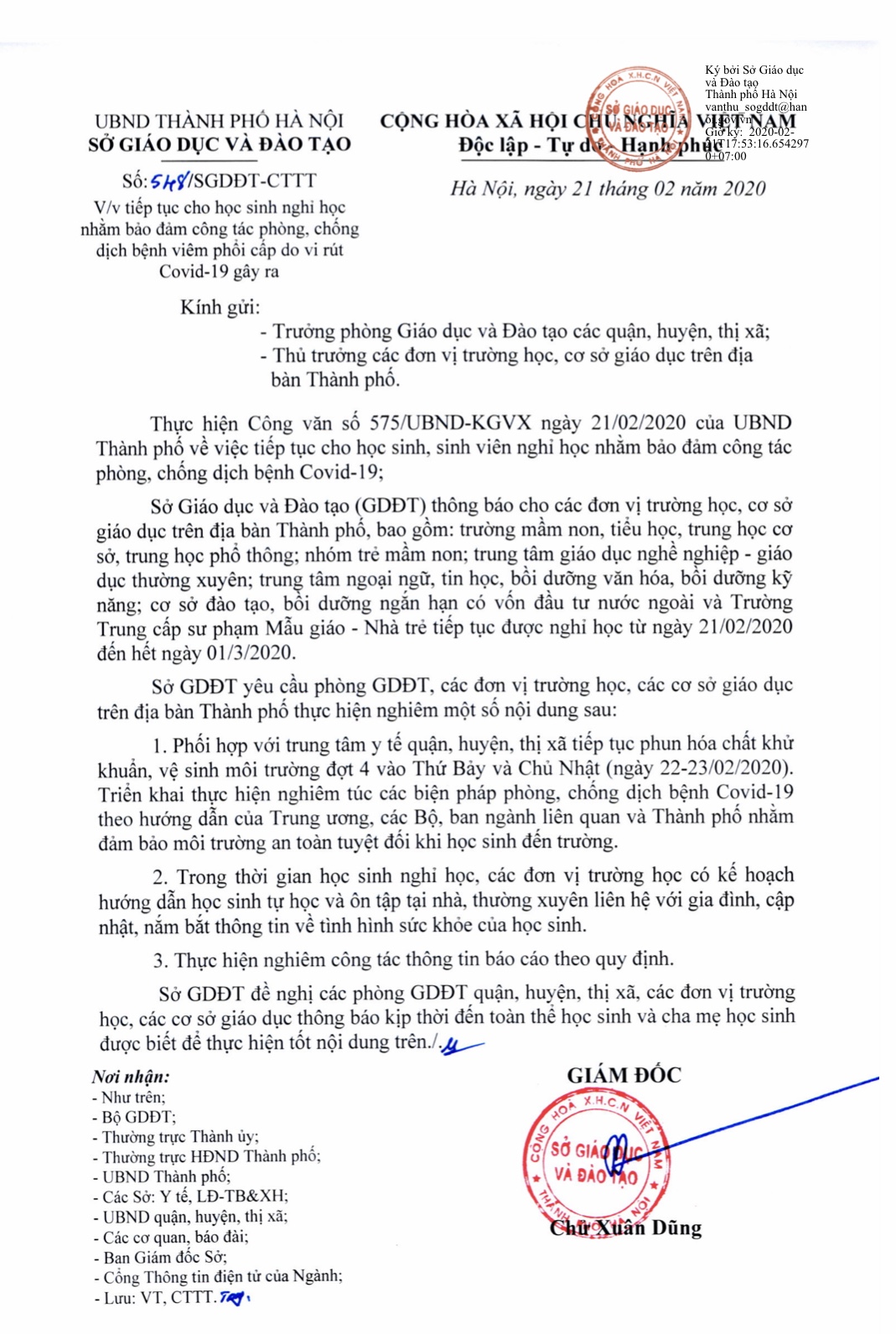 CV số 548 của SGDĐT v/v tiếp tục cho học sinh nghỉ học