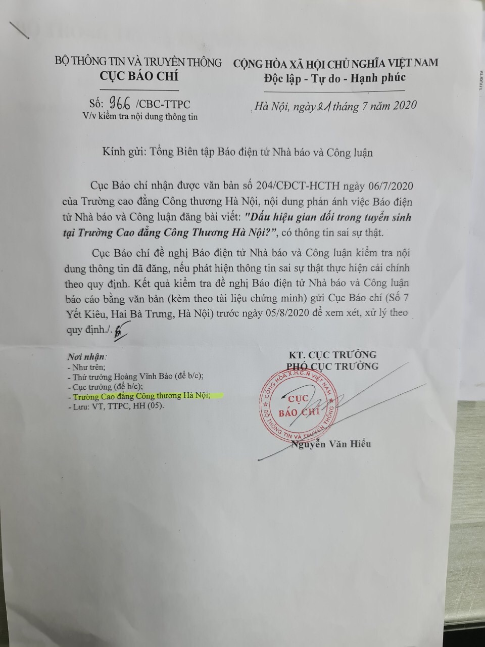 Cv số 966 của Cục Báo Chí Bộ Thông tin và Truyền thông v/v kiểm tra nội dung thông tin16:07 - 25/07/2020 Chia sẻ: