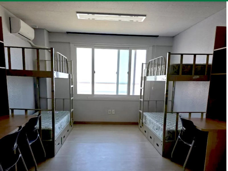 - Mỗi phòng đều được trang bị Bàn (tủ sách), ghế, tủ quần áo, giường (nệm), giá để giày, internet, Wi-Fi