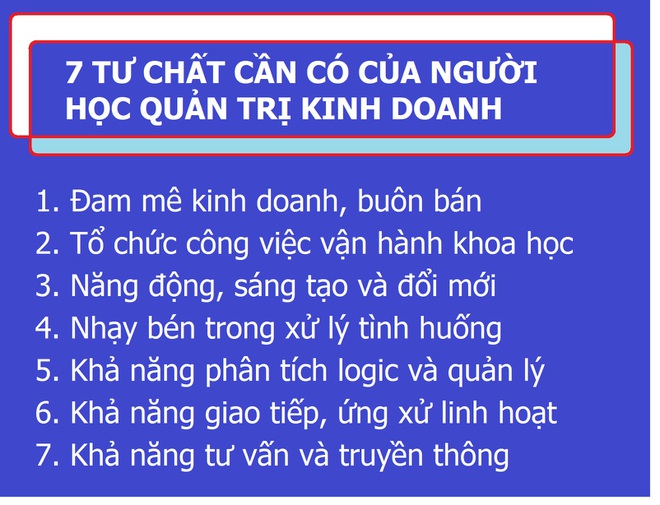 Theo ông, quản trị kinh doanh là ngành đào tạo cho người học có trình độ hiểu biết và nhận thức về hoạt động kinh doanh, quản lý và điều hành một doanh nghiệp.