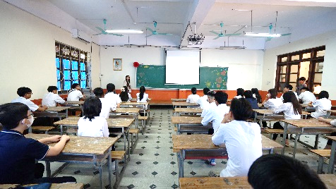 Học sinh lắng nghe Giáo viên chủ nhiệm phổ biến nội quy, quy chế, chương trình và lịch học