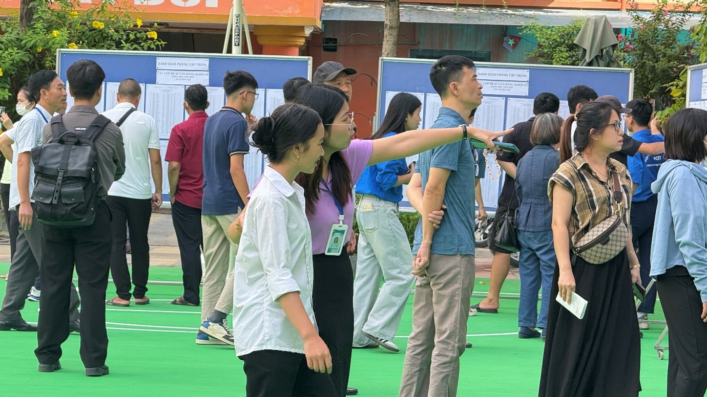 Học sinh và phụ huynh xem thông tin về lớp học, phòng học