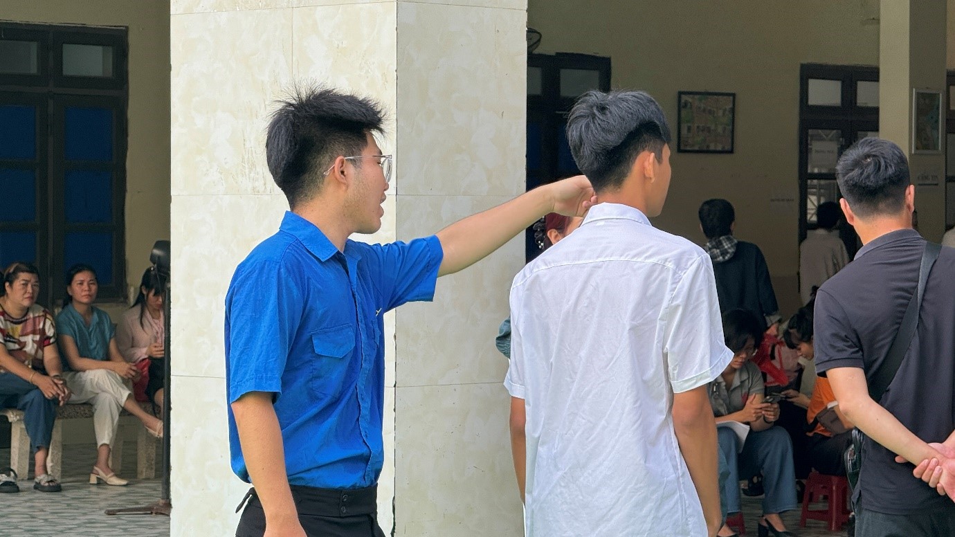Cán bộ, giáo viên, chuyên viên và thanh niên xung kích hướng dẫn PH và học sinh