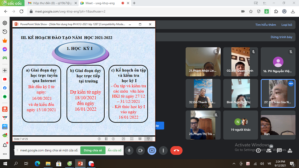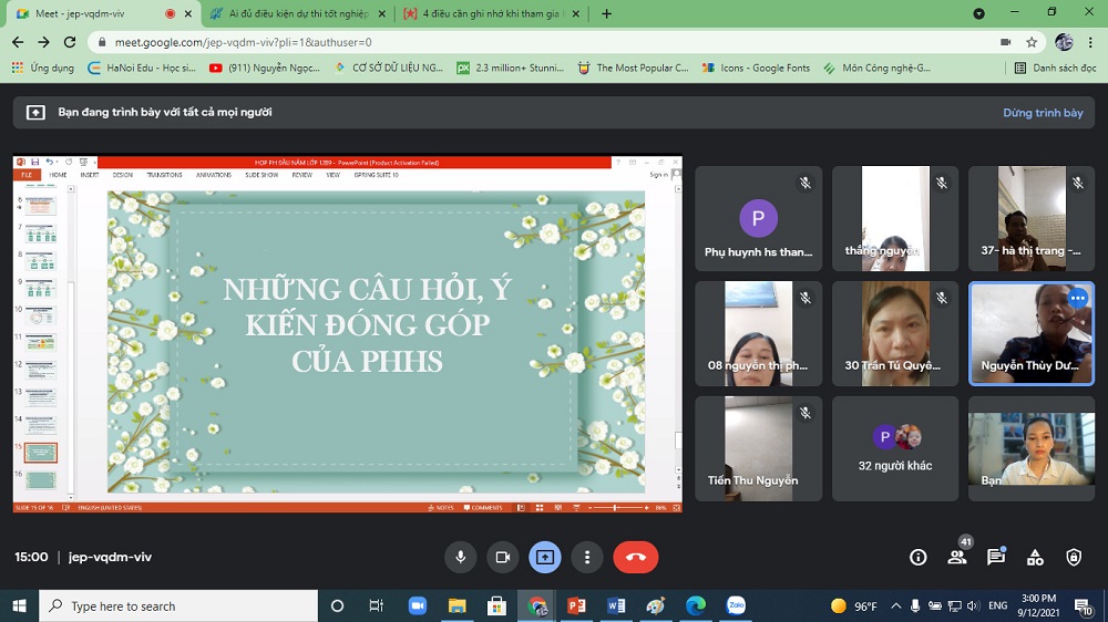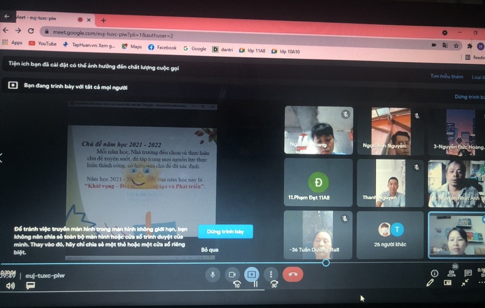 Do tình hình dịch bệnh Covid-19 diễn biến phức tạp, thành phố Hà Nội thực hiện giãn cách xã hội theo Chỉ thị 16 của Thủ tướng Chính phủ, nên Nhà trường đã tổ chức họp phụ huynh theo hình thức trực tuyến, giáo viên chủ nhiệm các lớp được giao chủ trì họp phụ huynh của lớp.