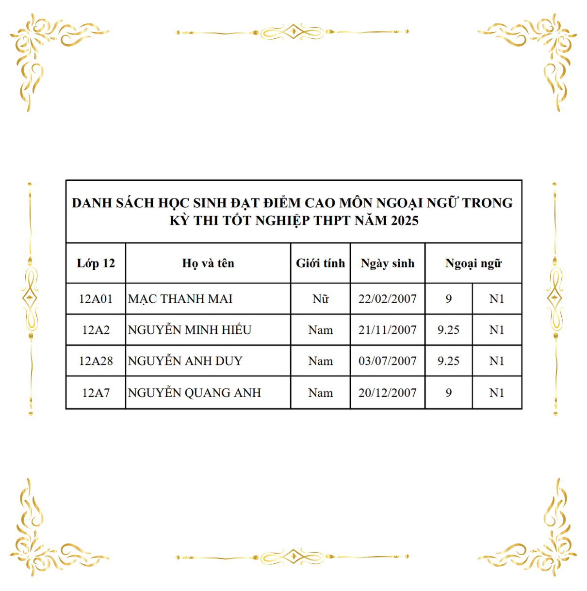 Các em là niềm tự hào không chỉ của gia đình, nhà trường mà còn là minh chứng cho tinh thần học tập nghiêm túc, bền bỉ của thế hệ trẻ hôm nay.