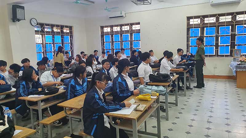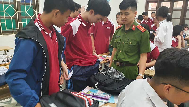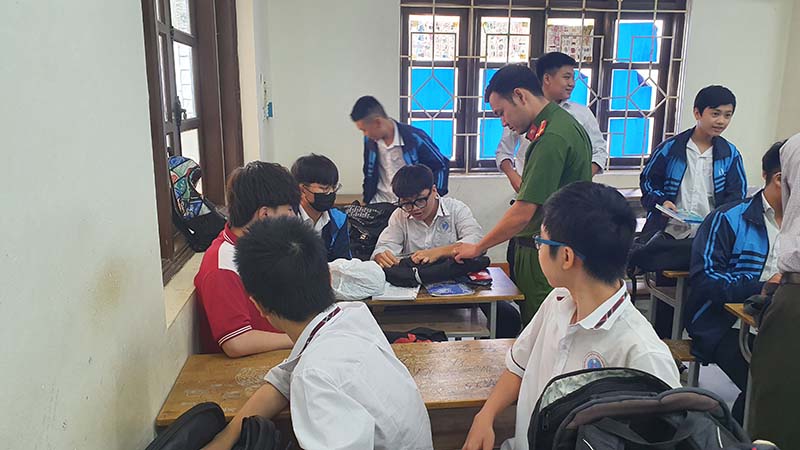 Nhằm triển khai thực hiện nghiêm túc, có hiệu quả Thông tư 06 và Công văn 4869, ngày 07/10/2020, Trường cao đẳng Công thương Hà Nội và Trường THPT Hoàng Mai đã phối hợp với Công an quận Thanh Xuân và công an Phường Thanh Xuân Trung tổ chức kiểm tra hành chính các lớp học để tuyên truyền cho học sinh các quy định của pháp luật về việc cấm tàng trữ sử dụng các chất gây nghiện và các loại hung khí, chất gây cháy nổ đến trường học, đồng thời ngăn ngừa và phát hiện (nếu có) học sinh mang các chất gây nghiện, hung khí đến trường, nhằm xây dựng môi trường giáo dục an toàn, trật tự, thân thiện, phòng chống bạo lực học đường.