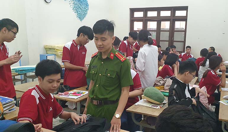 Dưới đây là 1 số hình ảnh Công an Quận Thanh Xuân Hà Nội và Công an phường Thanh Xuân Trung tổ chức kiểm tra hành chính trực tiếp tại các lớp học việc thực hiện các quy định của pháp luật của học sinh đối với việc bảo đảm an ninh, trật tự trong nhà trường: