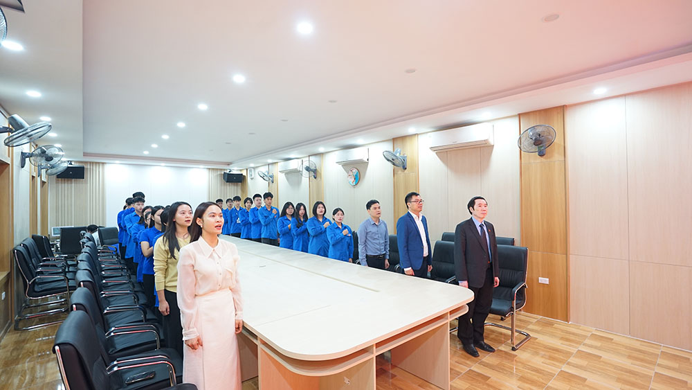 Trong không khí trang nghiêm của buổi lễ, toàn thể cán bộ, đoàn viên Nhà trường đã cùng nhau thực hiện nghi thức chào cờ thiêng liêng, thể hiện lòng yêu nước, niềm tin son sắt đối với sự lãnh đạo của Đảng và khát vọng cống hiến cho sự nghiệp xây dựng, phát triển đất nước.