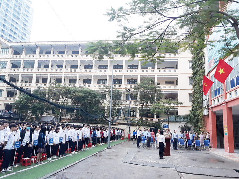 Tham dự Lễ chào cờ có toàn thể các thầy cô trong ban Giám hiệu, trưởng phó các phòng ban, cán bộ chuyên viên, các thầy cô giáo và toàn thể học sinh khối 11 hệ THPT và hệ hai văn bằng.