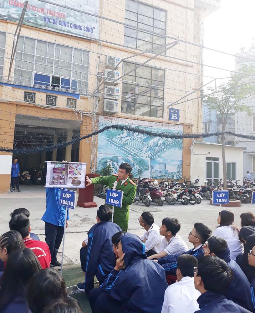 Cũng tại Lễ chào cờ tháng 12/2018, ông Ngô Quốc Khánh – Công an phòng Cảnh sát điều tra tội phạm ma túy, công an thành phố Hà Nội đã tuyên truyền và nêu những tác hại của ma túy, các chất gây nghiện và cách phòng chống cho các em học sinh.