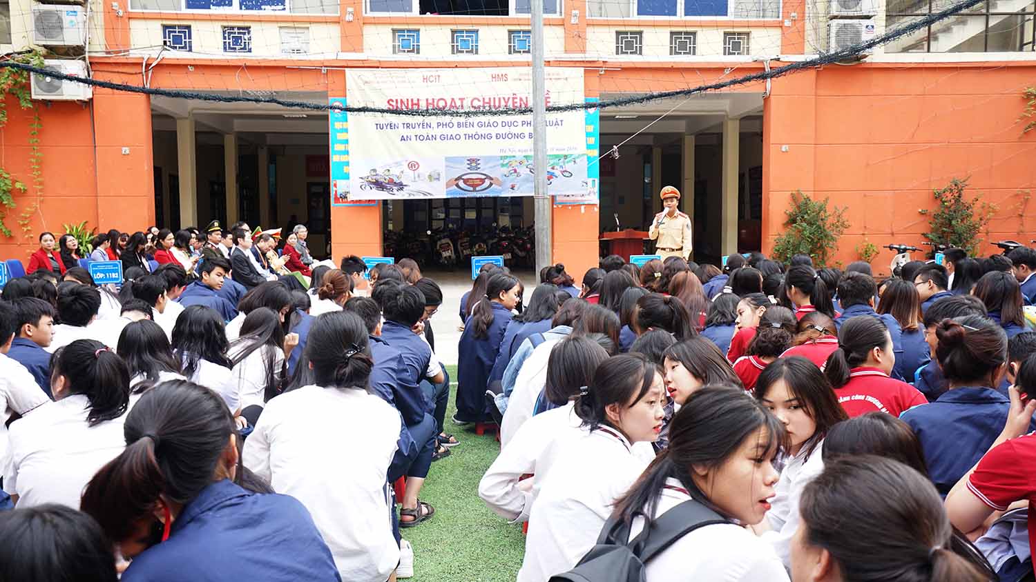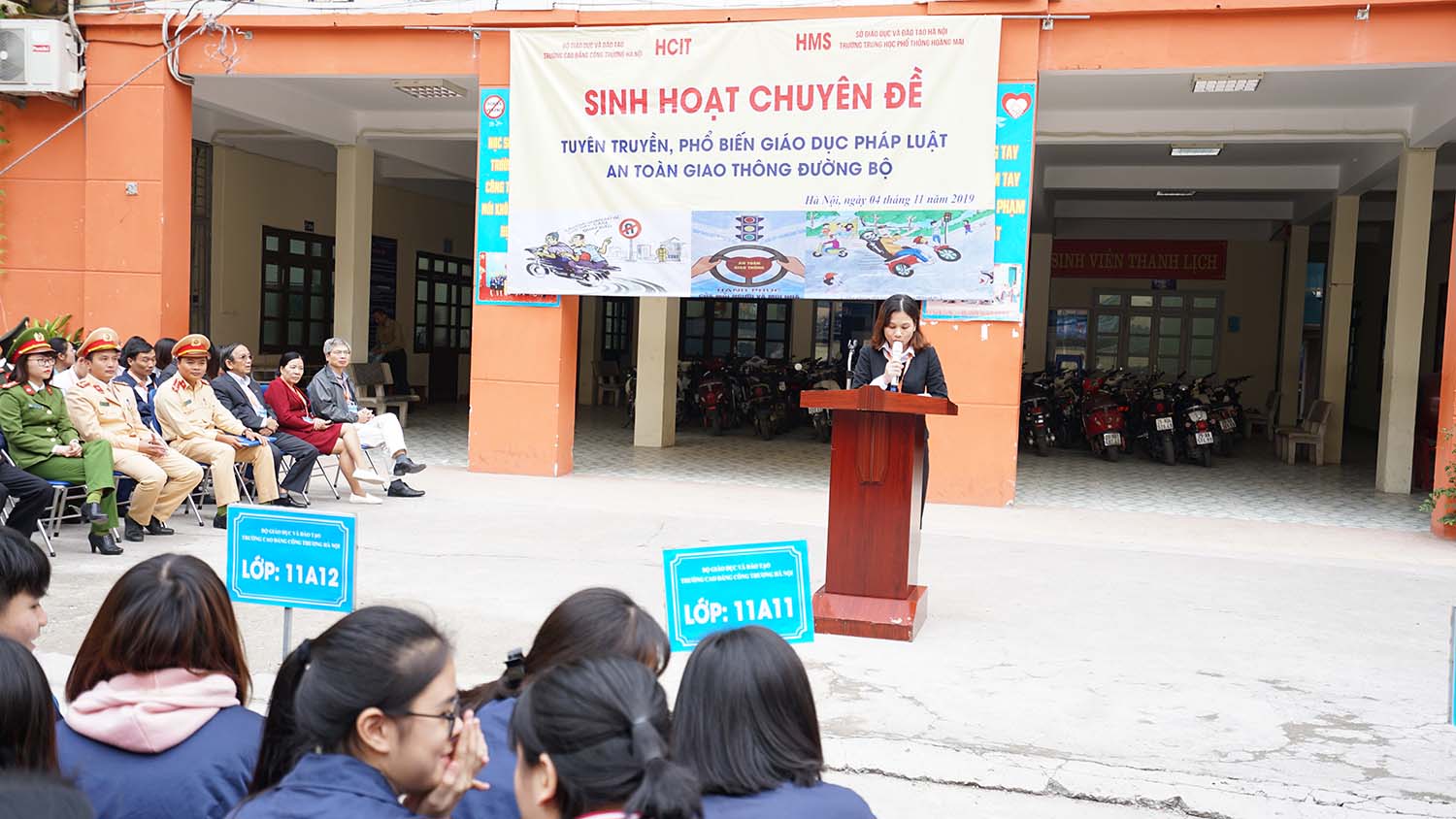 Thực hiện Kế hoạch số 454/KH-UBATGTQG ngày 04/10/2019 của Ủy ban An toàn giao thông quốc gia về việc tổ chức hưởng ứng “Ngày thế giới tưởng niệm các nạn nhân tử vong vì tai nạn giao thông” tại Việt Nam năm 2019. Tại buổi lễ chào cờ đầu tháng 11, trường Cao đẳng Công thương Hà Nội và trường THPT Hoàng Mai đã có sự tham dự của các đồng chí trong Đội Cảnh sát Giao thông và Đội An ninh Công an thành phố Hà Nội đến để tuyên truyền giúp các em học sinh nâng cao nhận thức, ý thức chấp hành pháp luật về an toàn giao thông đồng thời cùng cả trường dành 1 phút để tưởng niệm nạn nhân tử vong vì tai nạn giao thông.