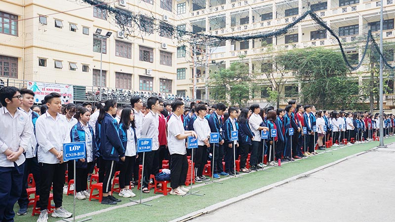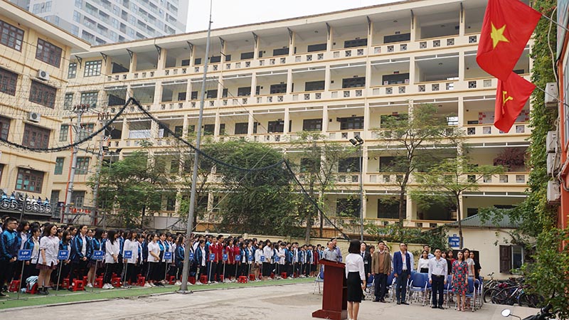Tham dự Lễ chào cờ có toàn thể các thầy cô trong ban Giám hiệu, trưởng phó các phòng ban, cán bộ chuyên viên, các thầy cô giáo và toàn thể học sinh khối 10 hệ THPT và hệ hai văn bằng.