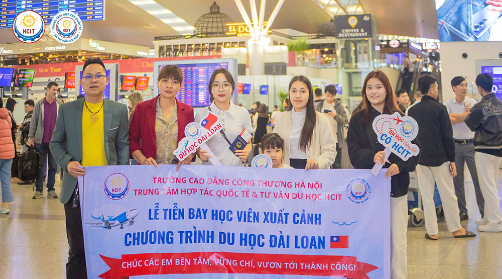 Ngày 26/02/2026, gia đình và đại diện Trung tâm Hợp tác Quốc tế & Tư vấn Du học HCIT – Trường Cao Đẳng Công Thương Hà Nội đã có mặt tại sân bay để tiễn bạn Nghiêm Thị Nga lên đường sang Đài Loan, chính thức nhập học tại Đại học Khoa học và Công nghệ Chính Tu.