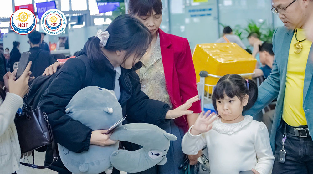 Toàn thể gia đình cùng đại diện Trung tâm Hợp tác Quốc tế & Tư vấn Du học HCIT – Trường Cao Đẳng Công Thương Hà Nội đã có mặt tại sân bay để tiễn và chúc học viên lên đường du học