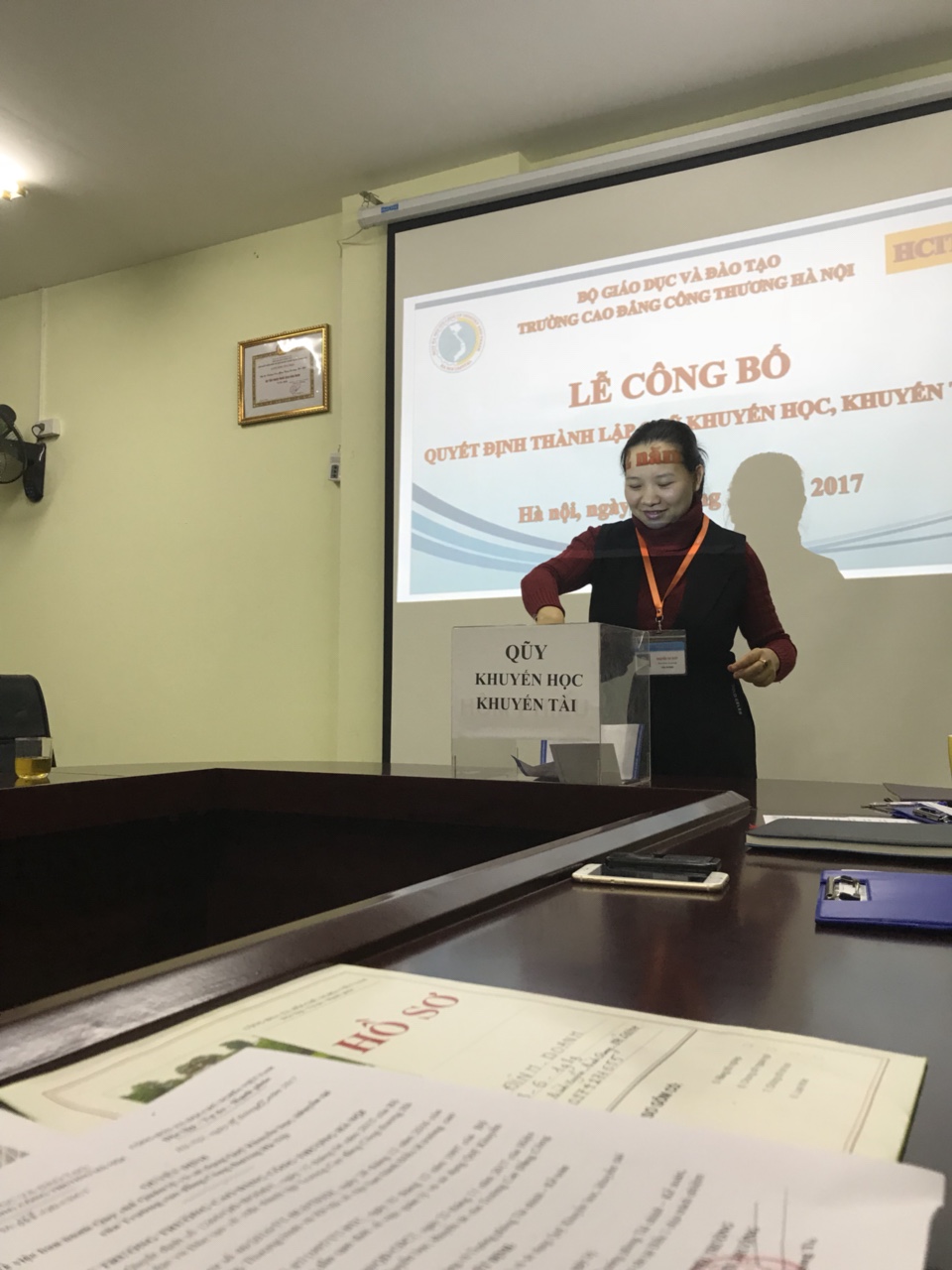 Nhằm động viên, khuyến khích học sinh sinh viên có nhiều cố gắng trong học tập, tích cực rèn luyện đạo đức, tác phong, đồng thời hỗ trợ các học sinh, sinh viên các gia đình có hoàn cảnh đặc biệt khó khăn, học sinh, sinh viên là người dân tộc thiểu số ở vùng cao, vùng sâu, vùng xa, miền núi, hải đảo và khen thưởng cho học sinh, sinh viên có thành tích xuất sắc tham gia các kỳ thi văn hóa, khoa học kỹ thuật, văn nghệ thể dục, thể thao các cấp,… Trường cao đẳng Công thương Hà Nội quyết định thành lập Quỹ Khuyến học, khuyến tài. Hôm nay, Nhà trường tổ chức Lễ công bố Quyết định thành lập Quỹ Khuyến học, khuyến tài.