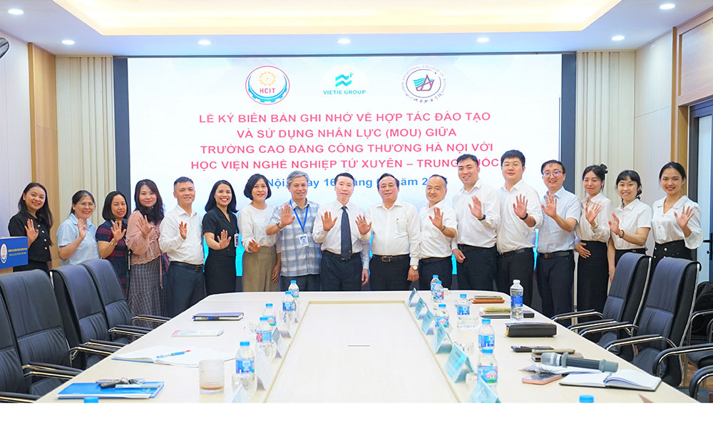 Lễ ký Biên bản ghi nhớ về hợp tác đào tạo và sử dụng nhân lực (MOU) giữa Trường Cao đẳng công thương Hà Nội và Học viện nghề nghiệp Tứ Xuyên – Trung Quốc đã diễn ra trang trọng, trong không khí cởi mở, trên tinh thần tôn trọng, hợp tác, các bên cùng có lợi để phát triển bền vững.