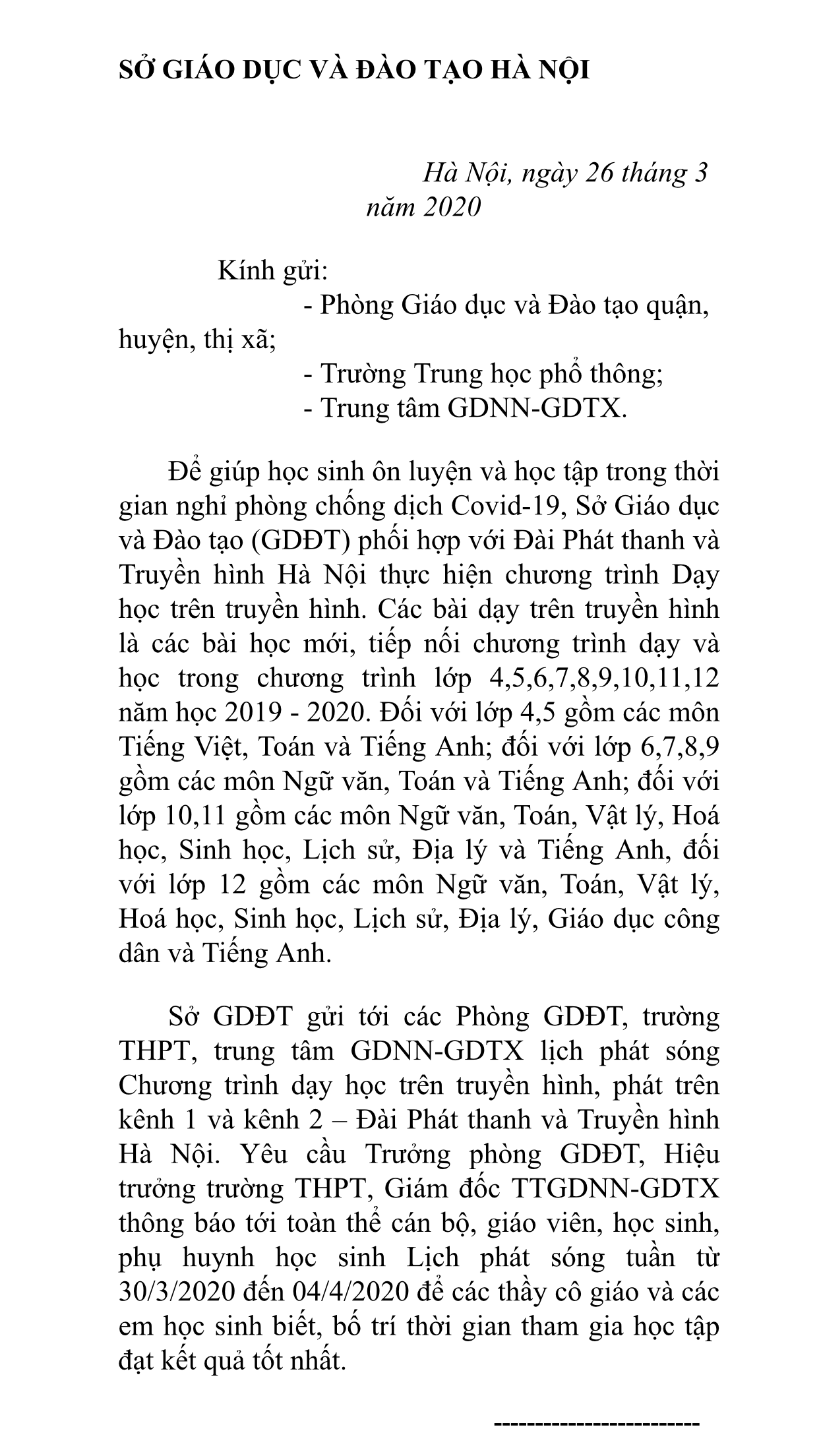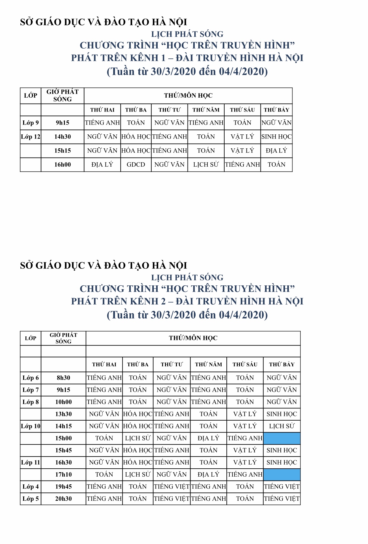 Lịch phát sóng Chương trình “Học trên truyền hình” từ 30.3-04.4.2020