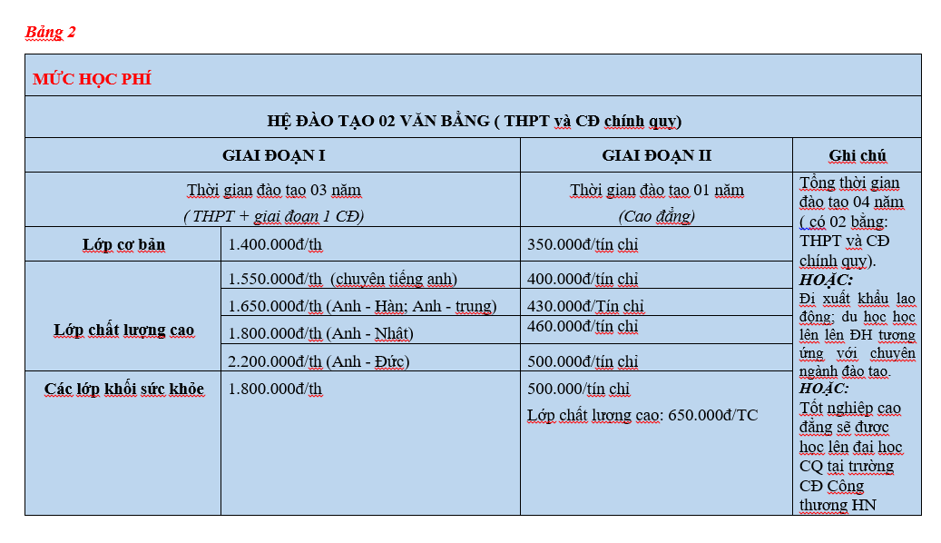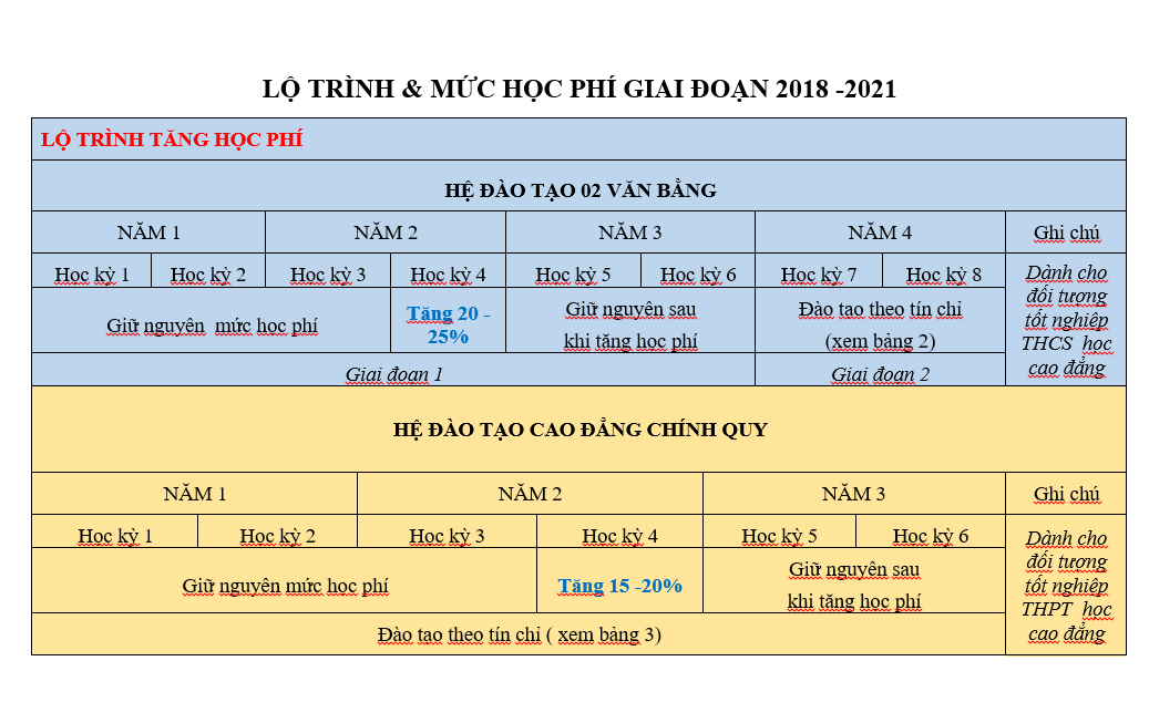 LỘ TRÌNH; MỨC HỌC PHÍ GIAI ĐOẠN 2018 -202117:05 - 29/05/2019Hệ đào tạo 2 văn bằng, hệ cao đẳng chính quy Xem chi tiết bên dưới Chia sẻ: