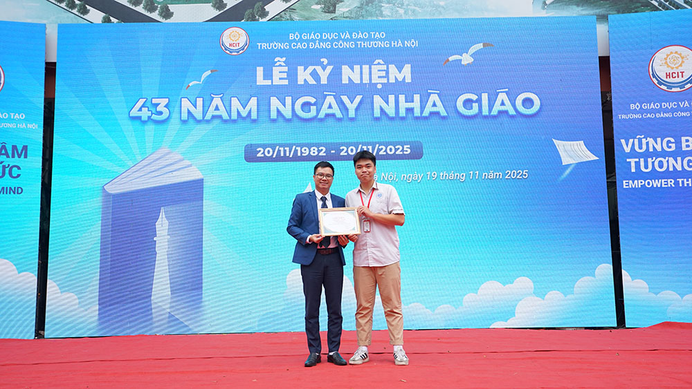 Tháng 11 – tháng của những cảm xúc bồi hồi, thiêng liêng trong lòng mỗi người học trò, tháng của tri ân, tôn vinh công lao của thầy cô, những người âm thầm gieo mầm tri thức, chắp cánh cho bao ước mơ, dẫn dắt các em học sinh, sinh viên trên hành trình vươn tới tương lai, sáng ngày 19 tháng 11 năm 2025, Trường Cao đẳng Công thương Hà Nội đã long trọng tổ chức Lễ mít tinh kỷ niệm 43 năm ngày Nhà giáo Việt Nam (20/11/1982 – 20/11/2025).