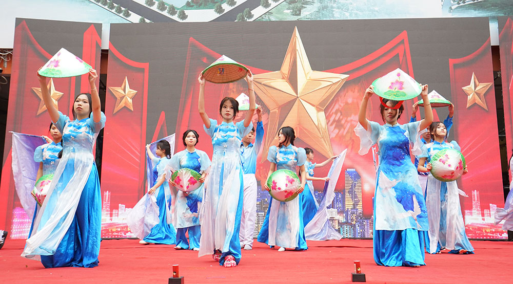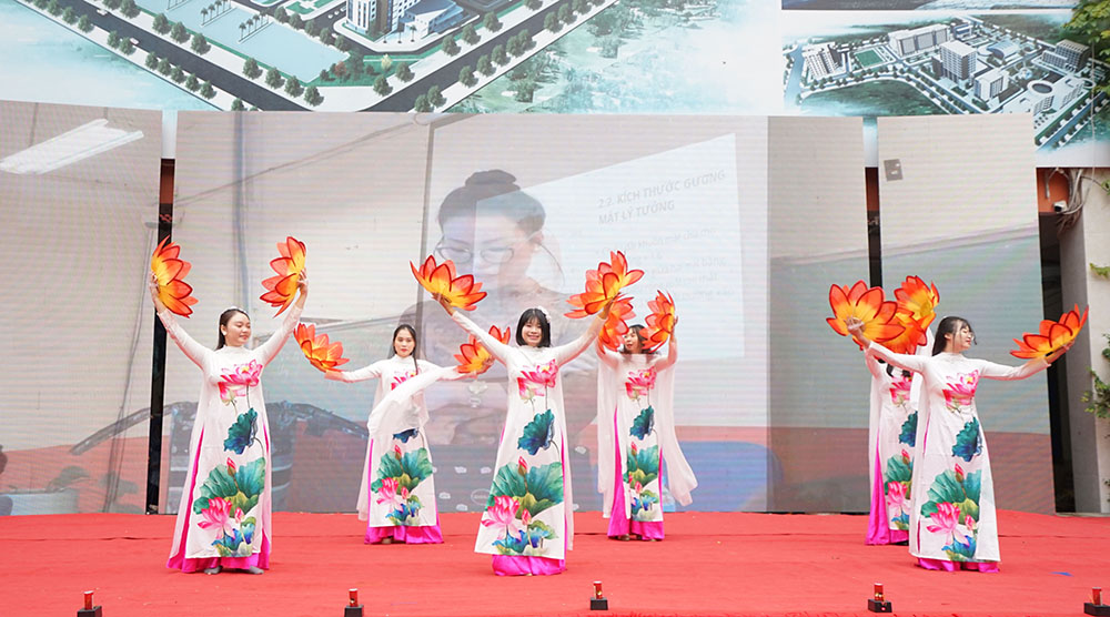 Quang cảnh toàn trường cùng tiết mục văn nghệ.