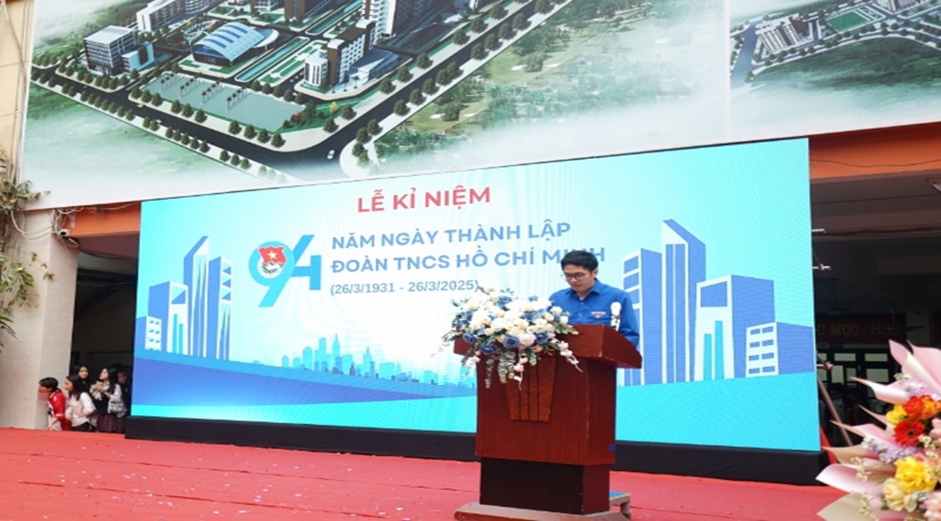 Thay mặt BCH Đoàn TNCS Hồ Chí Minh trường, Đồng chí Lê Thị An – Phó bí thư BCH Đoàn Trường đã đọc diễn văn kỷ niệm 94 năm ngày thành lập Đoàn TNCS Hồ Chí Minh (26/03/1931 - 26/03/2025). Diễn văn có đoạn viết: “Năm 2025 với chủ đề là “Kết nối công nghệ, kết nối tương lai!”, Đoàn Thanh niên Trường tổ chức thực hiện 5 nhiệm vụ trọng tâm: