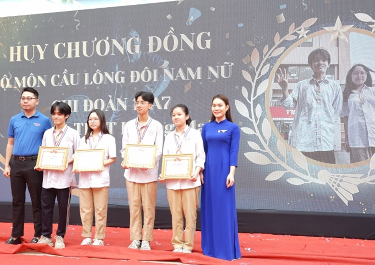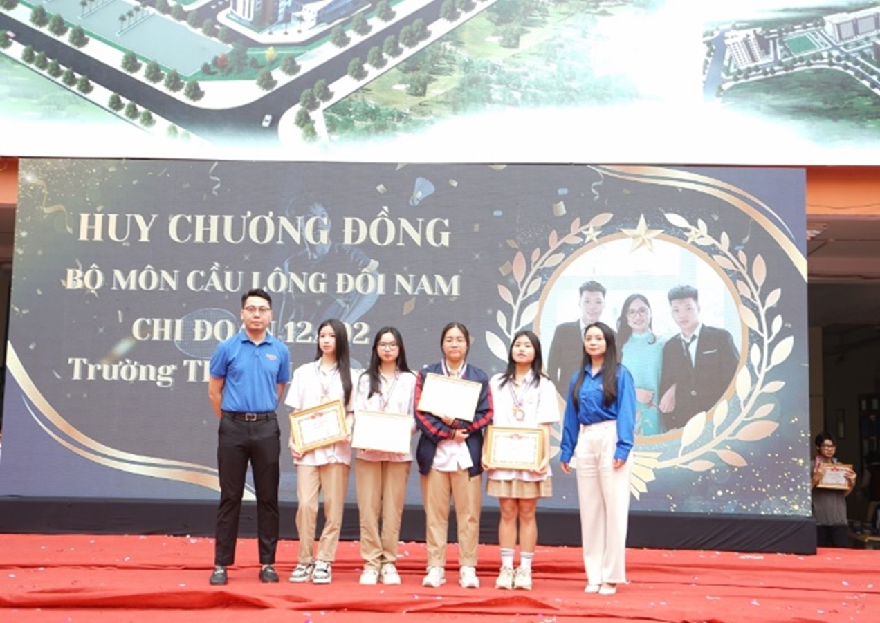 Đại điện BCH Đoàn trường trao giấy khen cho các VĐV tham gia thi đấu cầu lông