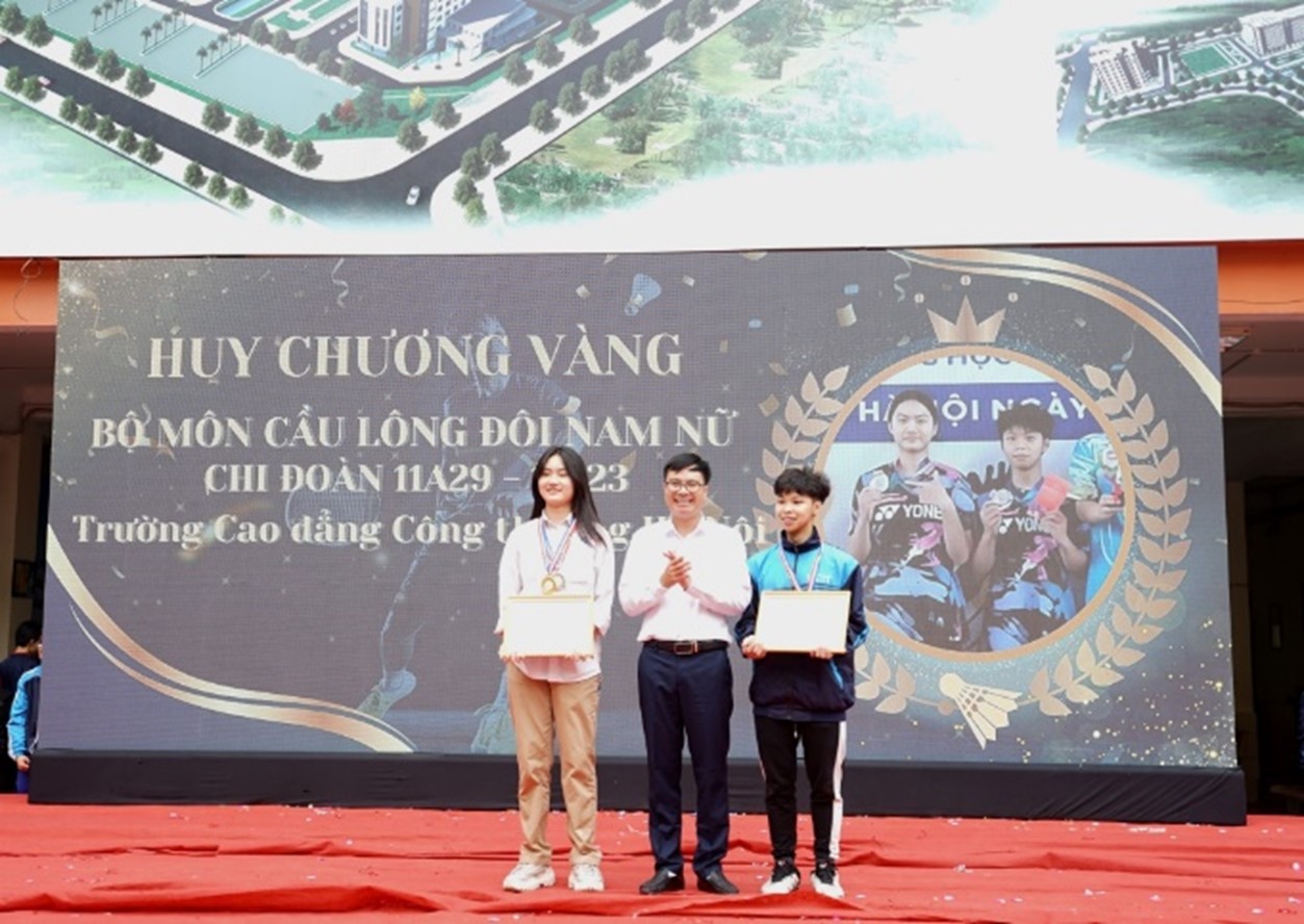Đại điện BCH Đoàn trường trao giấy khen cho các VĐV thành tích trong thi đấu cầu lông