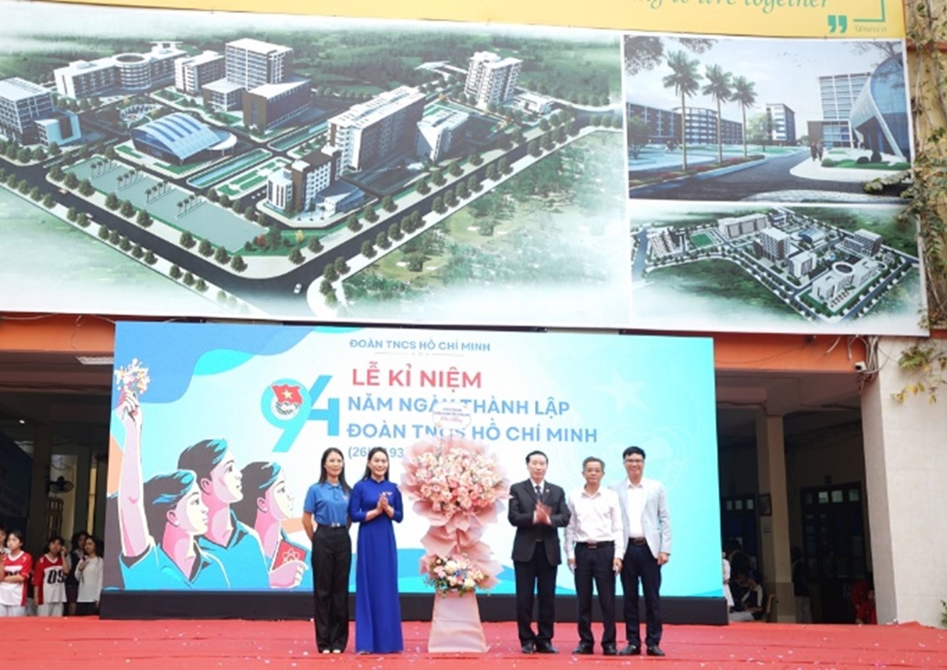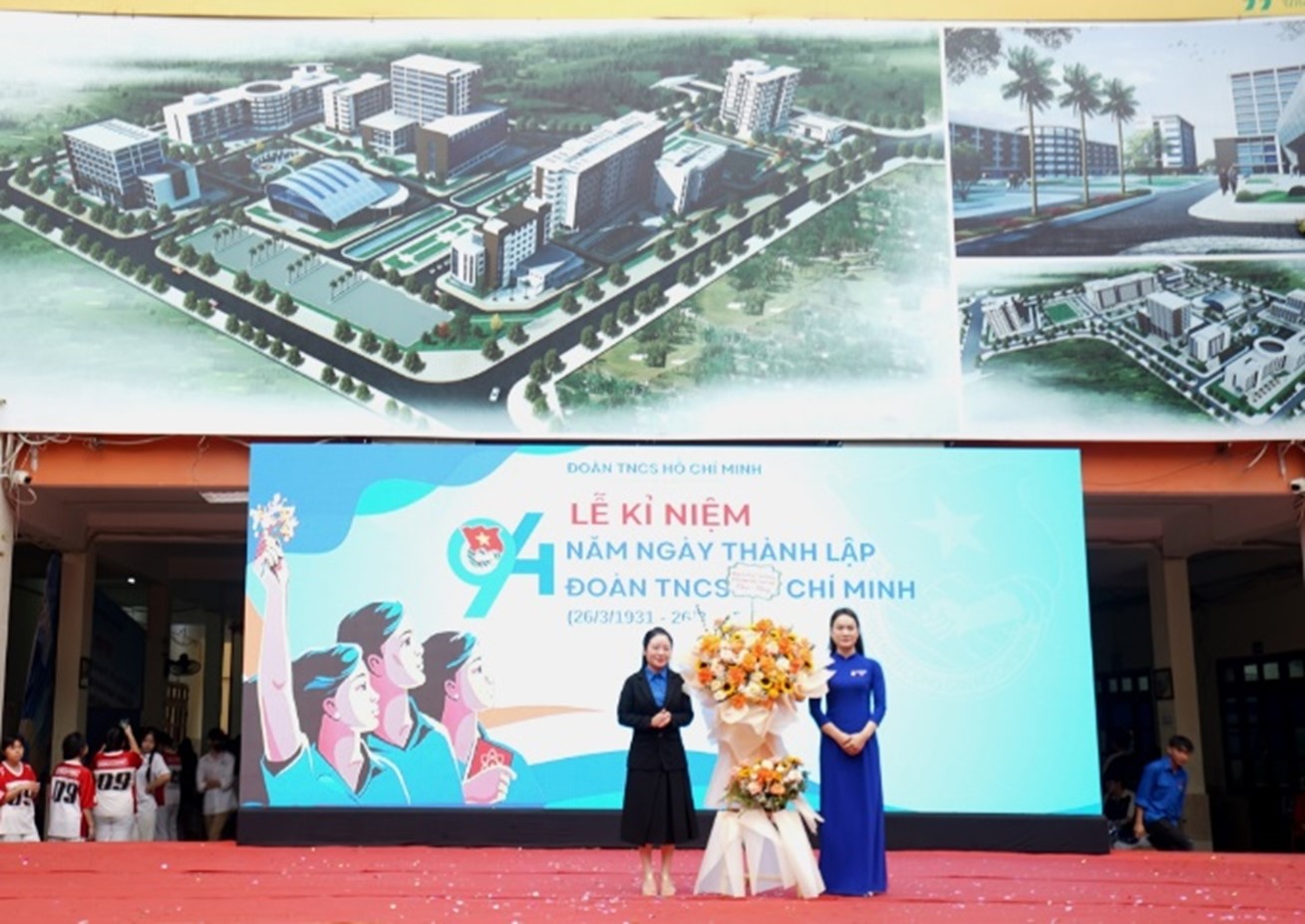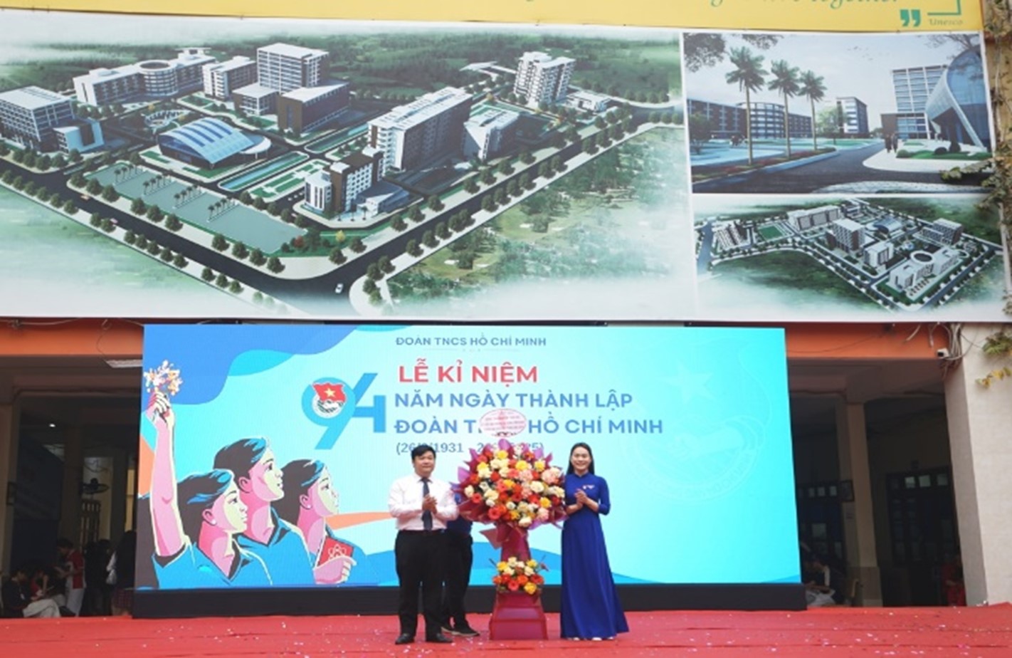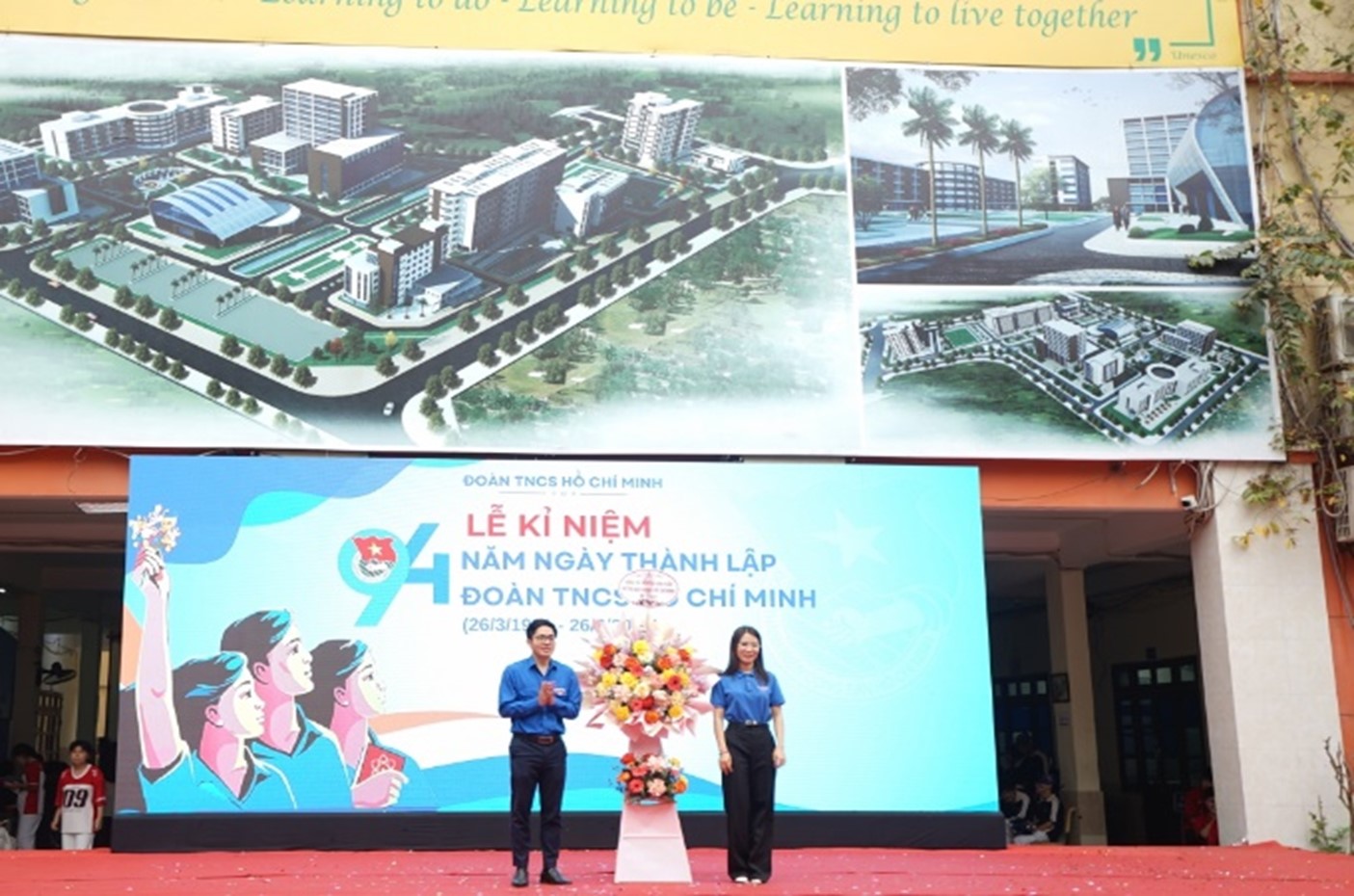 Đ/c Nguyễn Văn Tuấn – Bí thư BCH Đoàn TNCS Hồ Chí Minh, Bộ Giáo dục và Đào tạo tặng hoa chúc mừng Đoàn TNCS Hồ Chí Minh trường