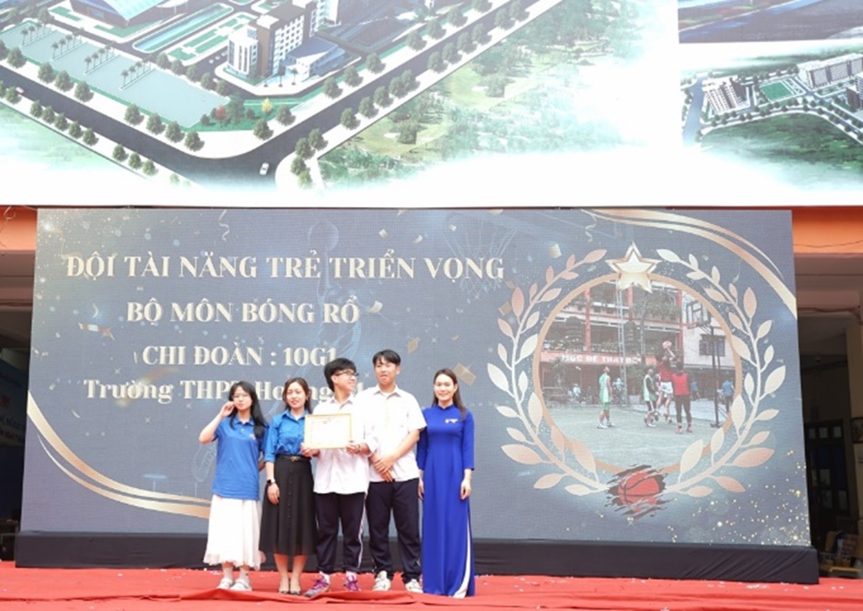 Đại diện BCH Đoàn trường trao giấy khen cho đội tài năng trẻ triển vọng môn bóng rổ