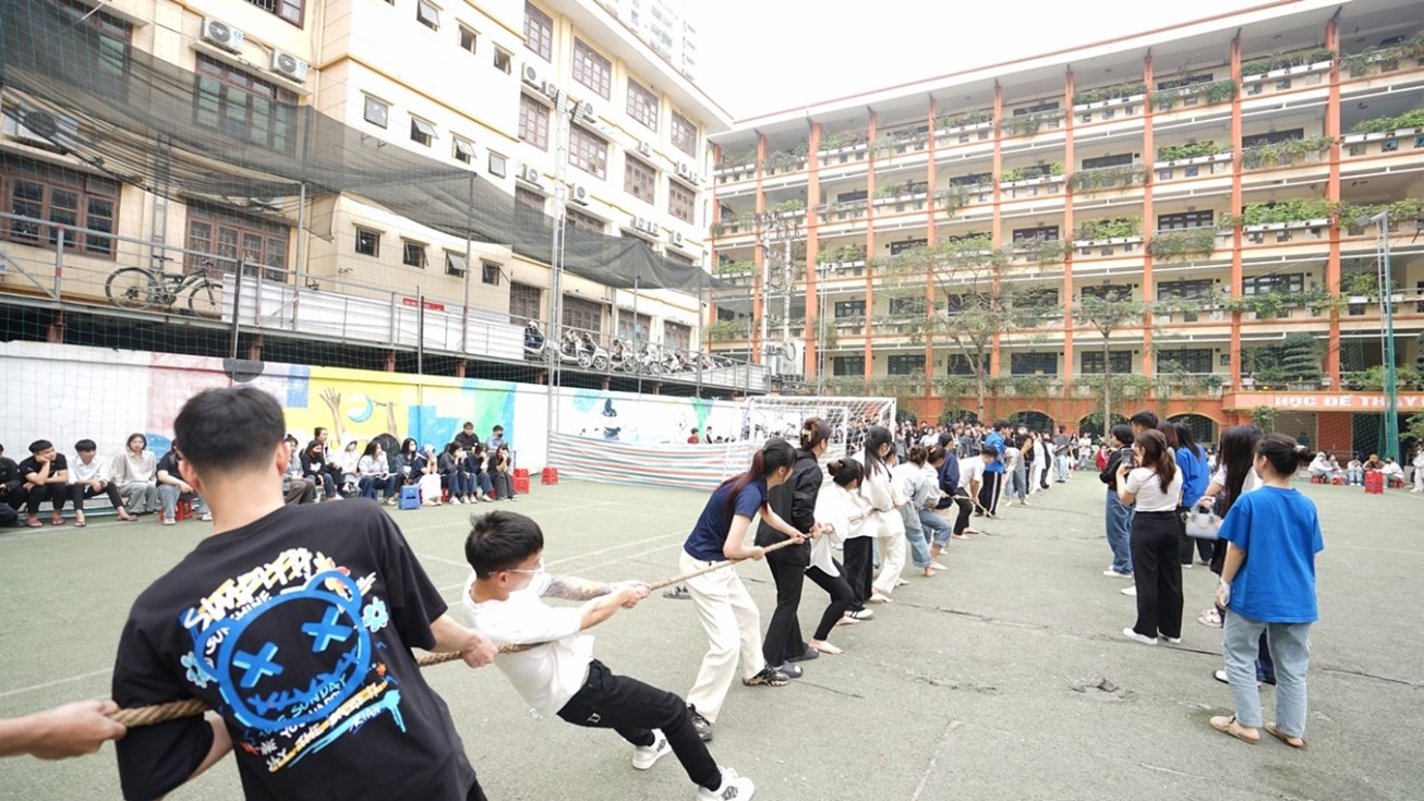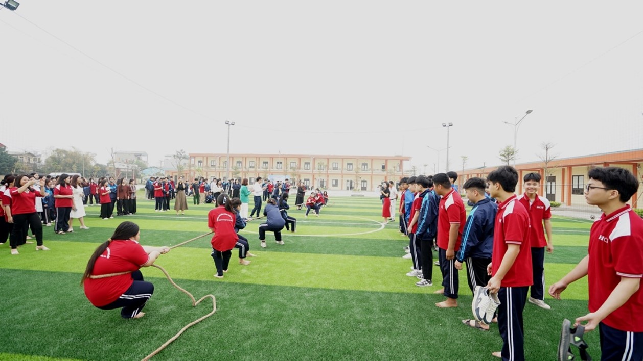Học sinh hệ 2 văn bằng cơ sở 2 Đại Áng hào hứng tham gia trò chơi kéo co