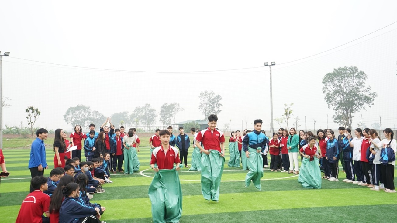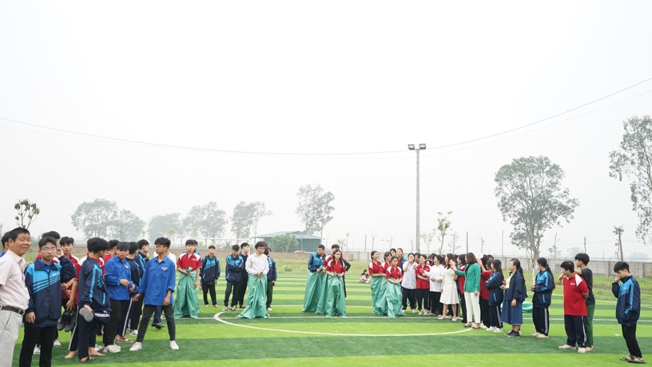 Học sinh hệ 2 văn bằng cơ sở 2 Đại Áng hào hứng tham gia trò chơi vui nhộn Nhảy bao bố