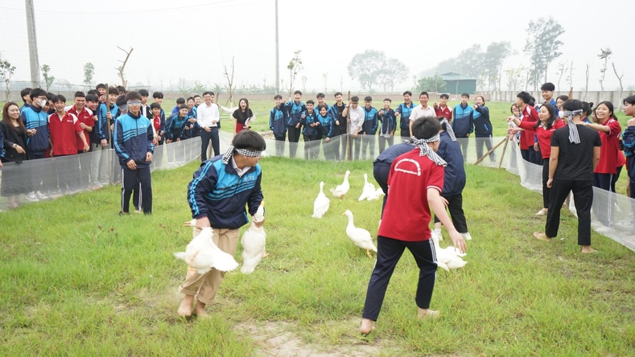 Học sinh hệ 2 văn bằng cơ sở 2 Đại Áng hào hứng tham gia trò chơi vui nhộn “Bịt mắt bắt vịt”