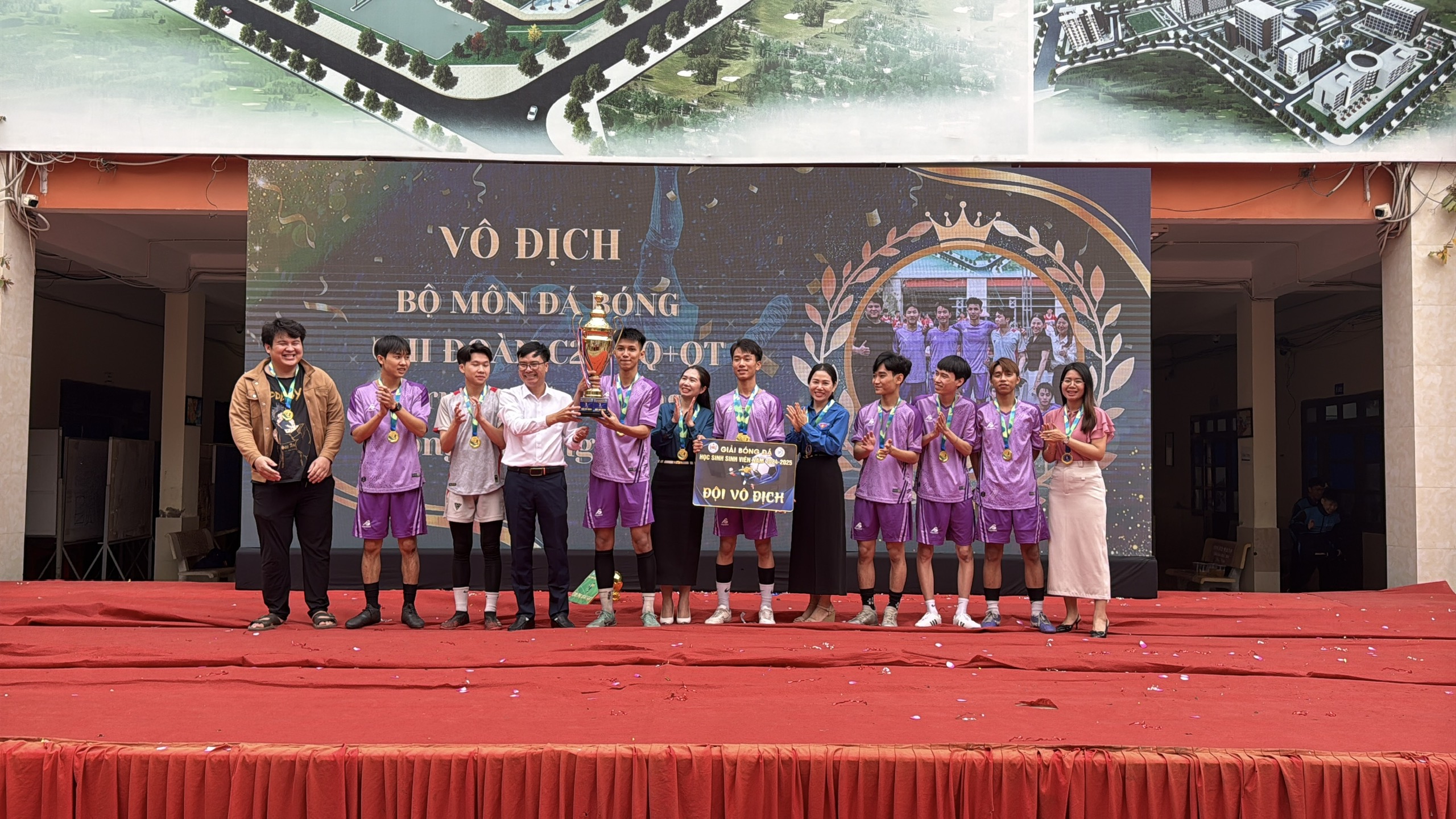 Đại điện BGH trường trao cúp vô địch cho đội đạt Hạng nhất môn đá bóng