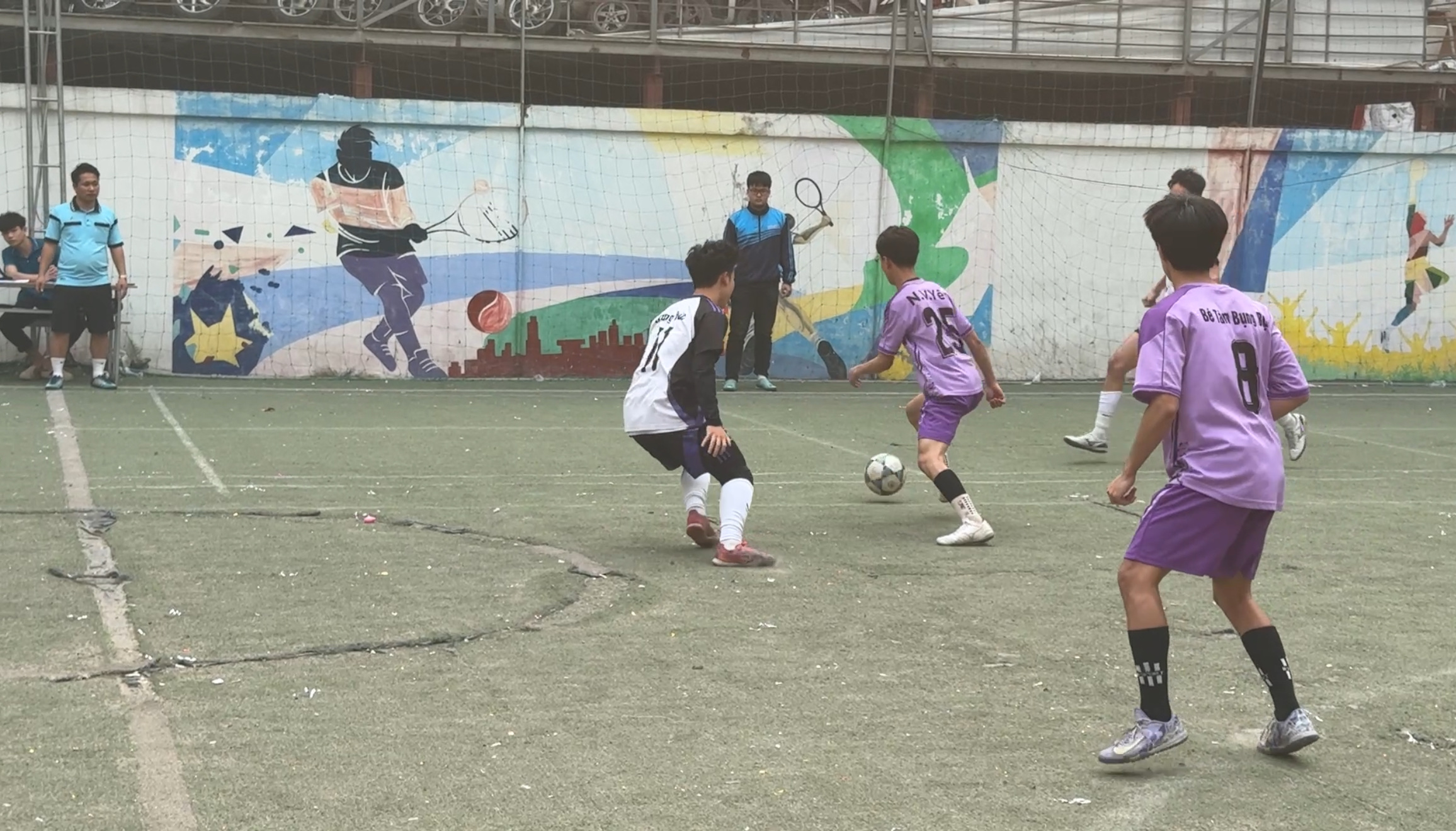 Hình ảnh học sinh tranh tài trong trận chung kết giải đá bóng