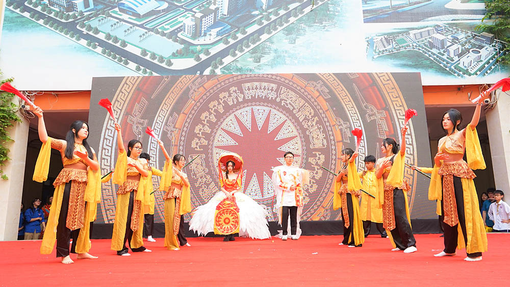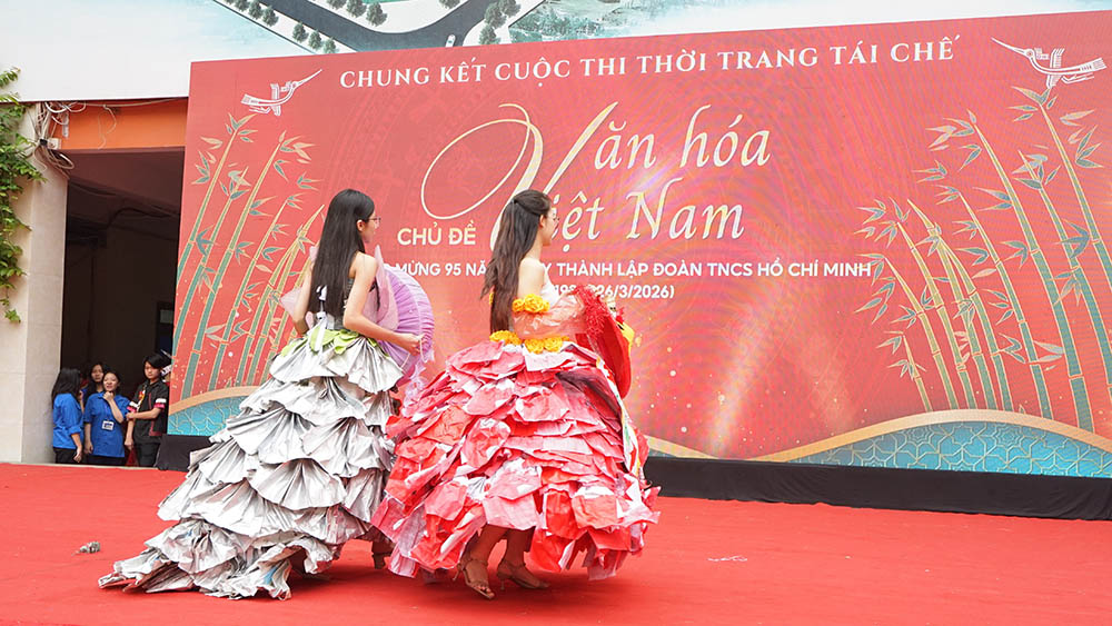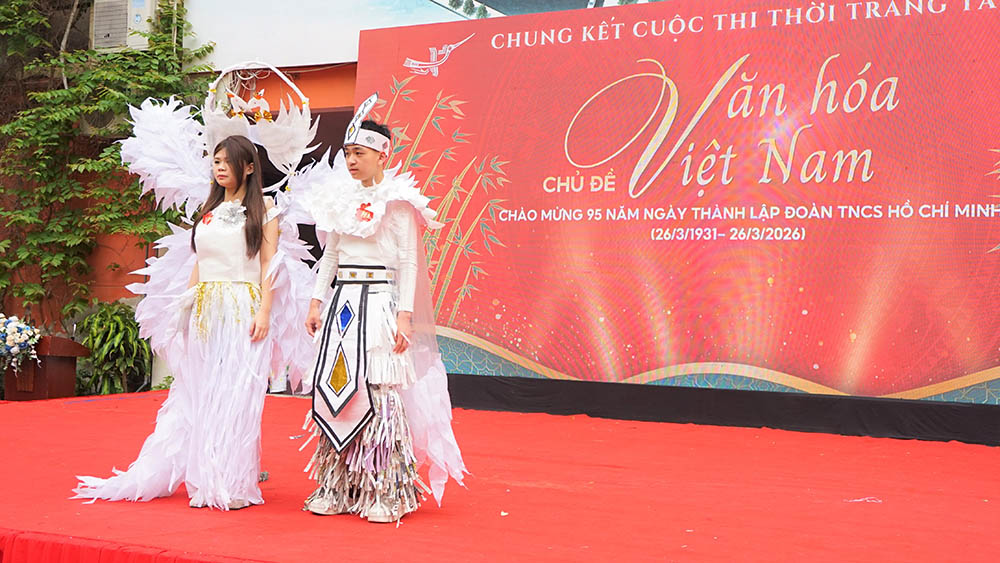 Học sinh biểu diễn tiết mục Thời trang tái chế với chủ đề “Văn hóa Việt Nam“