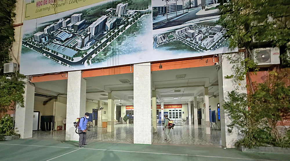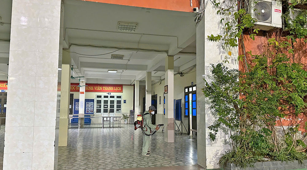Hoạt động phun thuốc diệt muỗi được triển khai tại lớp học các tầng các tòa nhà; Hành lang, cầu thang bộ; Khu xưởng thực hành; nhà vệ vệ sinh; Sân trường và các khu vực cây xanh, vườn trường;…