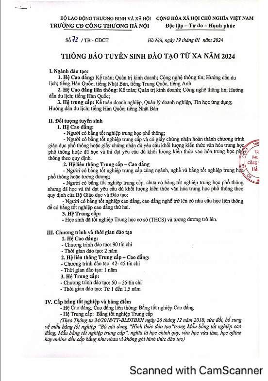 |  | THÔNG BÁO TUYỂN SINH HỆ ĐÀO TẠO TỪ XA NĂM 2024 |
