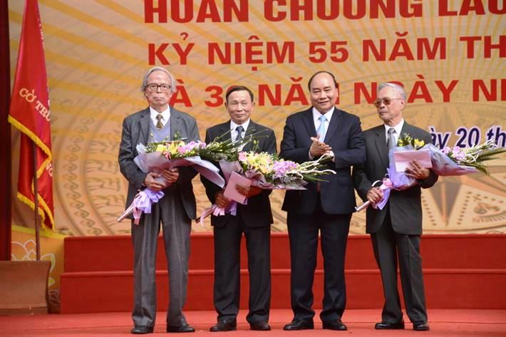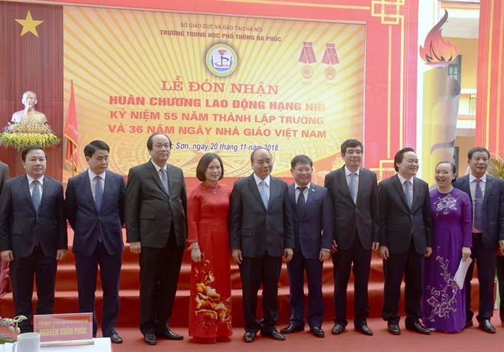 Tại buổi lễ, thay mặt lãnh đạo Đảng, Nhà nước, Thủ tướng trao tặng Huân chương Lao động hạng Nhì cho Trường THPT Đa Phúc, tặng hoa và tri ân các thầy giáo lão thành.