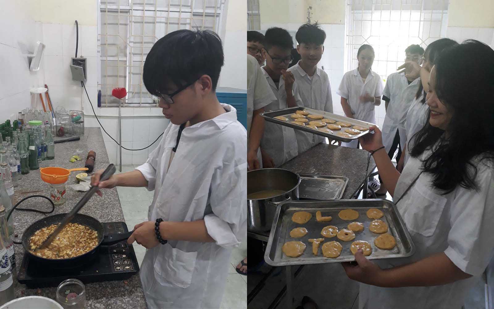 Học sinh thực hành làm bánh quy và làm kẹo lạc
