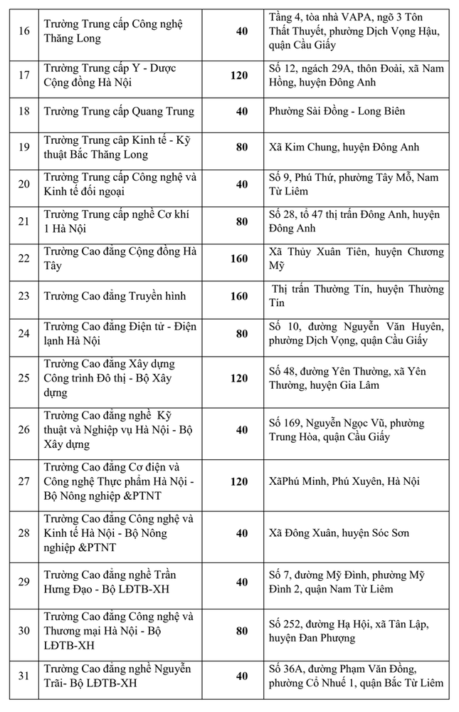 Chỉ tiêu tuyển sinh vào lớp 10 của 38 trường ĐH, CĐ, TCCN trên địa bàn thành phố Hà Nội như sau: