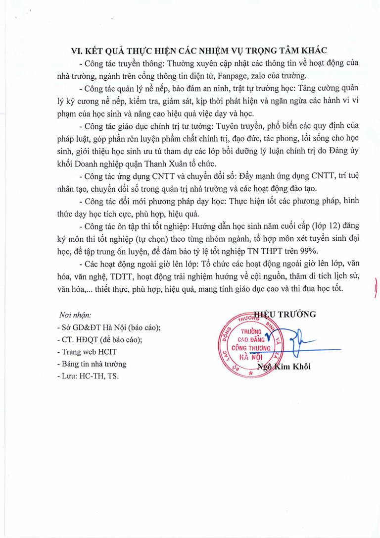 Công văn số 719 Phòng CT HSSV Trường Cao đẳng Công thương Hà Nội về việc tăng cường kiểm tra, giám sát thực hiện nội quy, quy chế