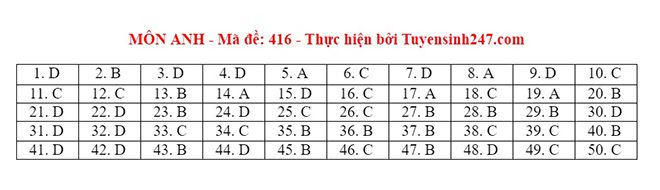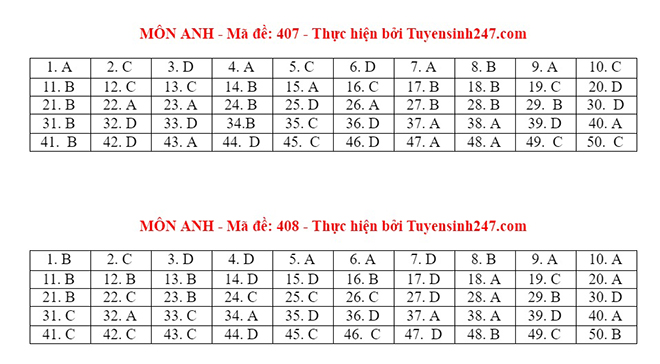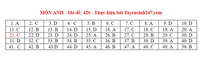 Trường cao đẳng công thương Hà Nội cập nhật gợi ý đáp án các mã đề môn tiếng Anh kỳ thi tốt nghiệp THPT năm 2021 để thí sinh và phụ huynh tham khảo.