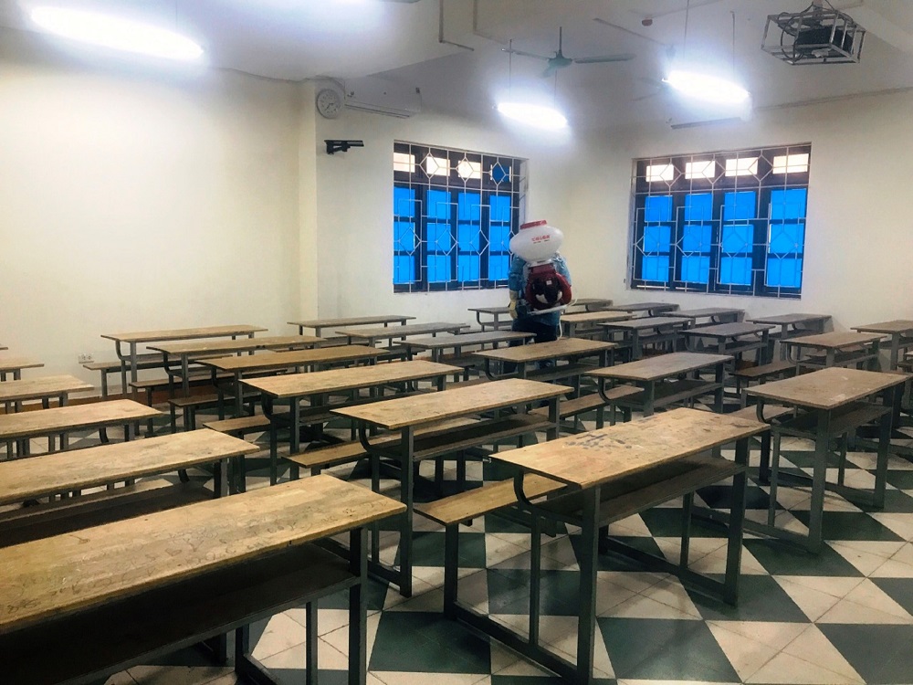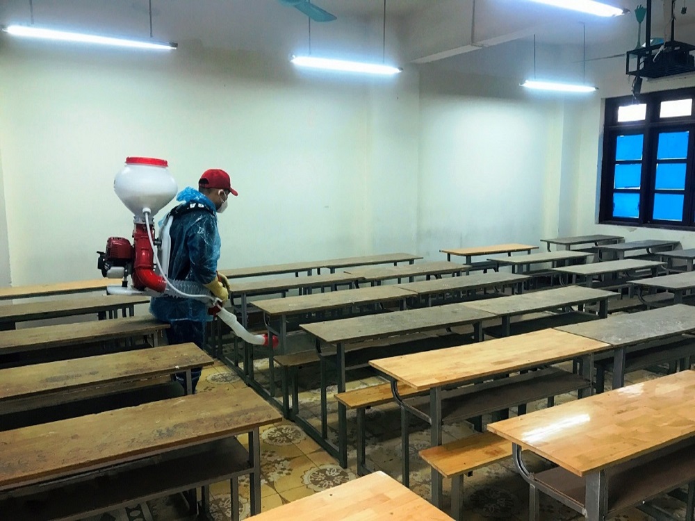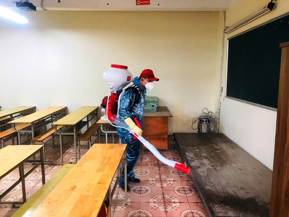 Dưới đây là một số hình ảnh vệ sinh, phun khử khuẩn chuẩn bị đón học sinh quay trở lại học trực tiếp: