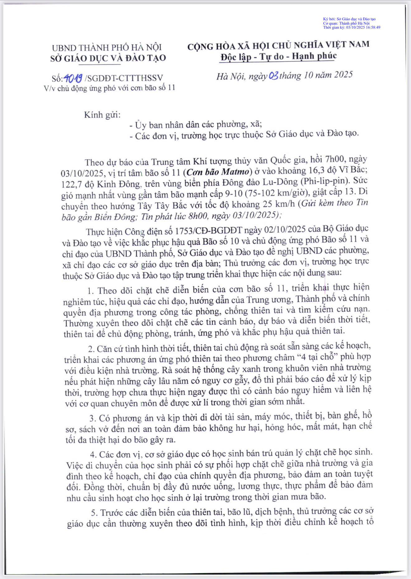 Công văn số 4019 Sở GDĐT về việc chủ động ứng phó với cơn bão số 11Tác giảTrung Tâm Thông tin &Truyền thông04/10/2025 - 11:00Công văn số 4019 Sở GDĐT về việc chủ động ứng phó với cơn bão số 11 Chia sẻ: